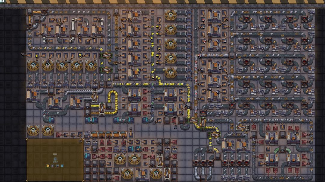 先来个好图作为封面吧。。。。下图为10X10绿瓶全自动,在后面详解 统计如有错误,概不负责😏😏 —————————————————————— 好,正文开始🤗🤗劲夫劲夫,全厂欢呼!!! 首先,这游戏不像异星工厂那样有大片大片的地盘,寸土寸金,得合理利用每一块地皮才行 所以我的要求是,尽可能不浪费每一点产能的前提下,全力缩小尺寸。当然,自动化,并且绝不堵车是基本要求(当然由于游戏本身的机制还是不可避免