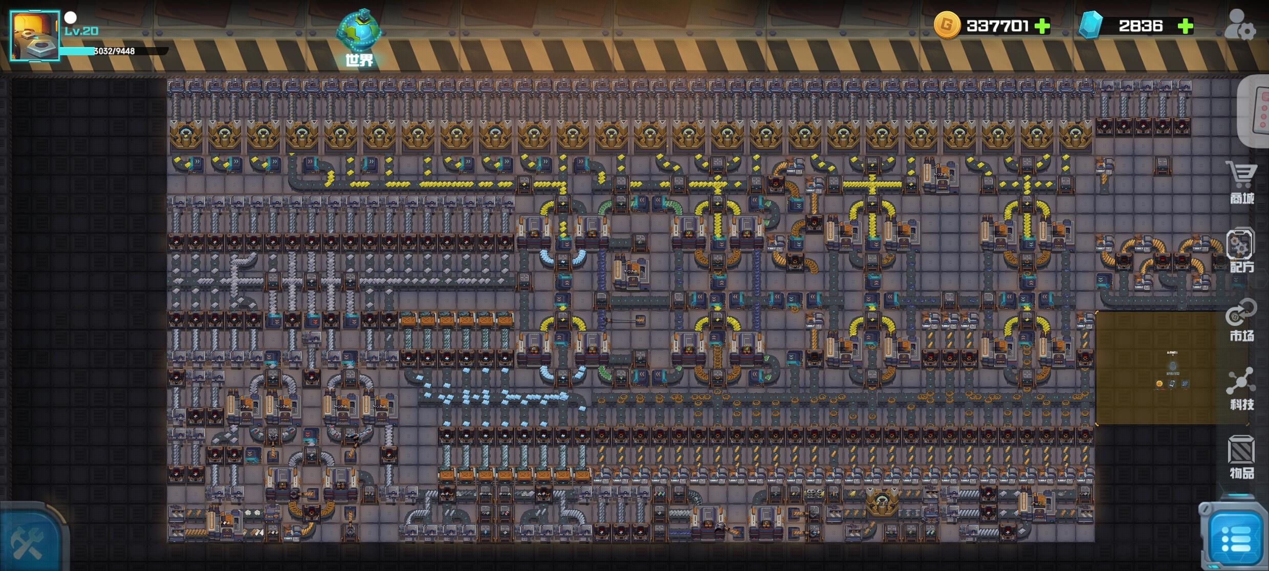 随着地块不断开发,从做绝缘线,高效电池,燃料升级到导弹车1.0到现在的2.0版现在的效率是75秒一个导弹车。矿厂基本都到了4级,绝缘线部分更是加上了处理加速芯片。综合生产部分需要手动补充电路板,内燃机,高效电池。燃料部分要补充电池。