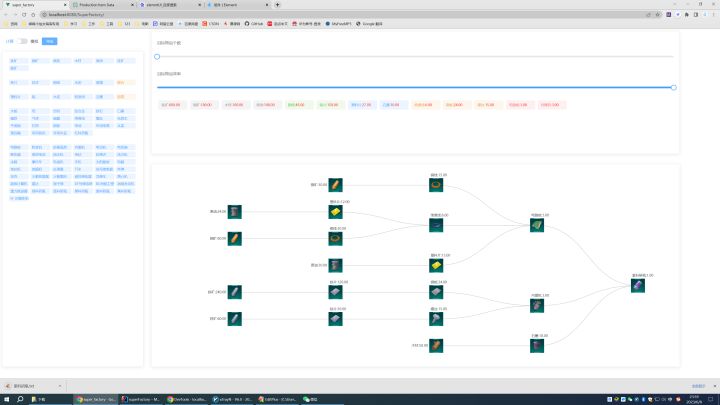 v1.0:选你要造啥,告诉你需要啥原料v2.0:加上了配速功能,鼠标悬浮查看v3.0:提供了数量设置功能,并且原材料通过颜色区分,更加直观v4.0:添加了悬浮查看可生产的高级物品功能,添加了导出文本功能,添加了效率配速功能,添加了布局模拟功能(还不完善)