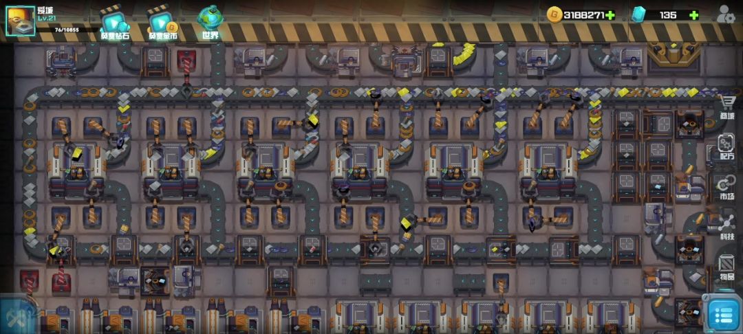 前期可以这么玩,后面主要做导弹车卖钱,生产开地的500个离心机,超级计算机等等。后期这样的流水线效率太低了