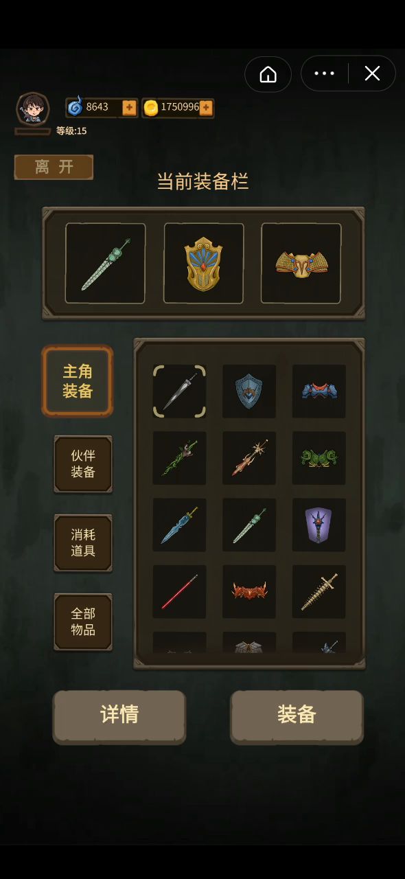 细节:什么装备都不带的情况下,从“主角”点进去剑的位置没有白色半隐图标,其他两个装备位有。但从“背包”点进去,三个装备位都有白色半隐图标。