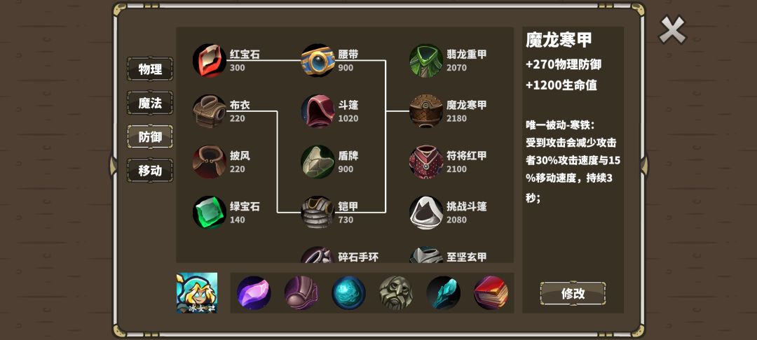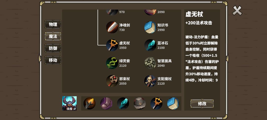 魂魔出装【已重新更改,附加炮台流】 A神之臂腕(A1反伤刃甲,A2震裂刚甲,A3陨魂石),B净灵靴,C支配魔杖(C1蓝冰石,C2圣火杖),D玲珑匕首(D1魔环刃),E智慧面具(E1魔魂书),F虚无杖(F1永恒披风) A技能后下次普攻有30%范围减速及伤害 A1提供大量物防,受物伤以25%法伤反弹,受伤大1000+10%,自身范围-8%生命 A2受伤提高输出及移速 A3提供法强和防御生命,升级恢复2