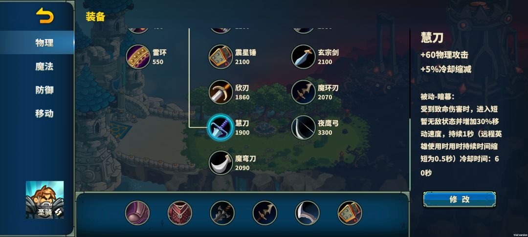 有人愿意实战试一下不? 我觉得圣骑一技能二技能受攻击加成,三技能爆发还加生存,那么走攻击向也还不错,跟走暴击向的戒灵有一拼。 看的大多数出装都是走防御向,能匹配圣骑近战的定位,但我觉得圣骑最特别的一点,是三技能那七秒的霸体。 现在多数肉盾都是用控制技能来保护脆皮,这时如果出现了一个能无视控制,且攻击力绝强的存在,那么理论上是极具优势的。 这个出装四级之前增加生存与辅助能力,四级之后增强三技能的强杀