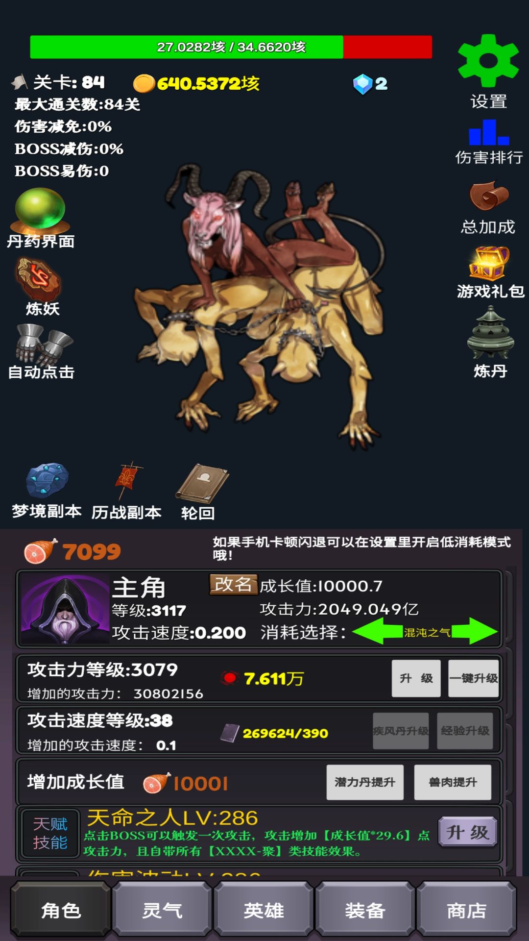 2.装备词条优先级,攻击速度>>攻击伤害>>点击伤害>伤害加深>>其他,(因为前期输出靠主角,资源有限,主角的输出是吃 点击和攻击伤害加成 的, 伤害加深 金币加成 可以通过练妖无限刷)。