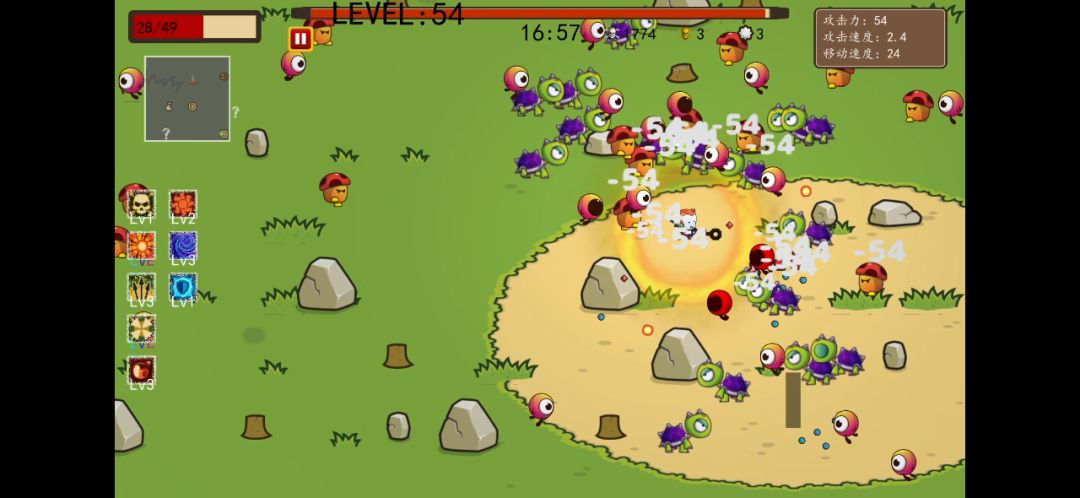 没改之前需要分裂+爆炸+四向才能站撸,现在只需要分裂+爆炸,然后找两个靠近的石头就可以挂机了,如果有宝物圆规,一个石头就行了。