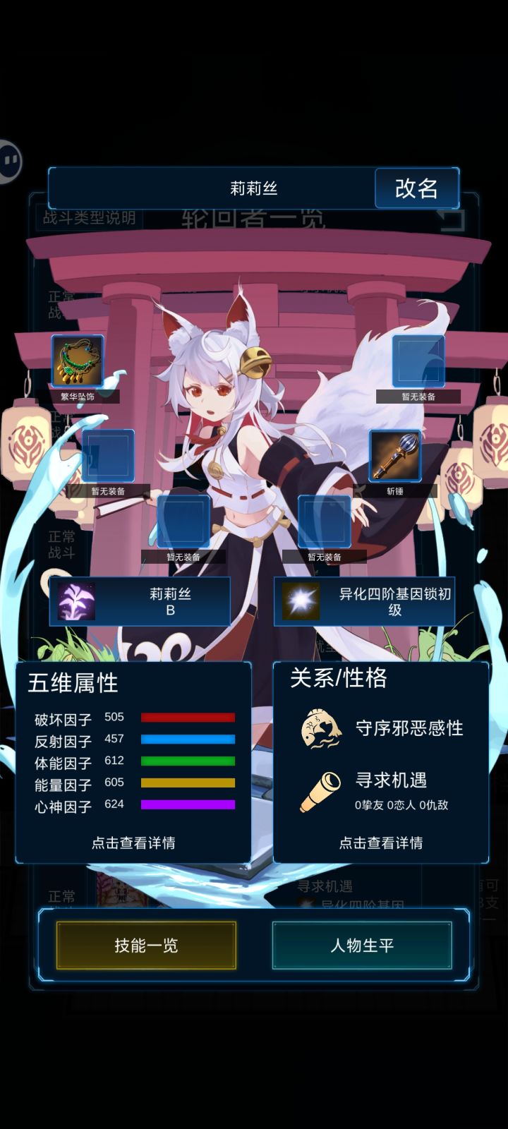 我直接就是五星拉满,可玩性挺好的,最主要的是我以为那个宗主就是白毛小萝莉,真的给我震惊了,然后才发现原来是天道化身,他那个异化基因锁太难搞了,我现在才收集了两个不同功法修仙者的四阶异化基因,虽然只玩了三个小时就全通了,基本上就是,一开始培养十个主力,然后三个三个的刷新人,然后把天赋拉满,然后扔进去挨打,一开始的时候随便养,想速通的话,其实也可以看广告,前期直接无敌只要看一个广告,刷出的修仙者,然后配上一个S级装备,下界无敌,过完两个下阶就可以过中界,过完两个中界就可以过上界,还是挺不错的,这狐狸这么牛逼吗?刚开出来就是四阶异化?