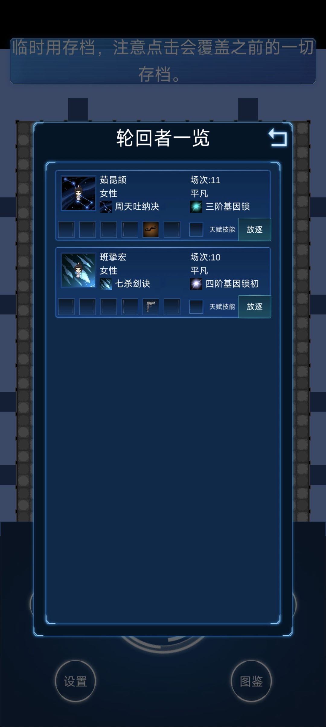 只用一个人,其他人全部放逐,打下位丧尸破1阶基因锁,再带2个人打下位武侠少林寺认证破二阶,再带1个人攻打少林寺破3阶,运气好就有一个三阶两个二阶,最后带的人一般死了。然后打中位,存档sl破4阶,破完四阶打下位丧尸6波,全员破4阶。记得先存档,没破就回档