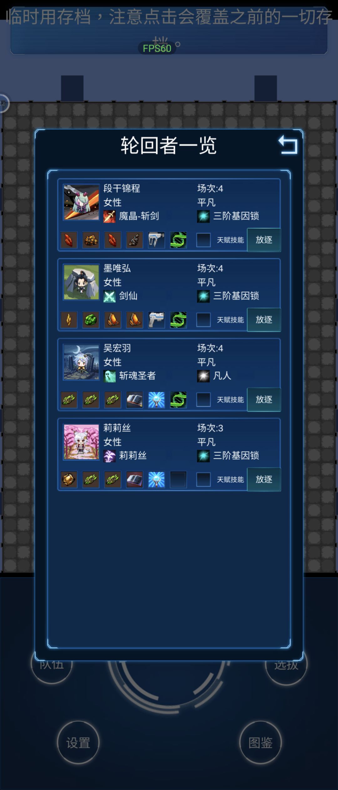 由于有风神了,想刷个水神,刷了几十次,每次水元素都要进化成灵风,实在没绷得住,遂只能采取点非常规手段了。 提一嘴,后面发现,人物最终会进化成什么都是在待选区就定了的,火神风神水神都是早就定好了的。