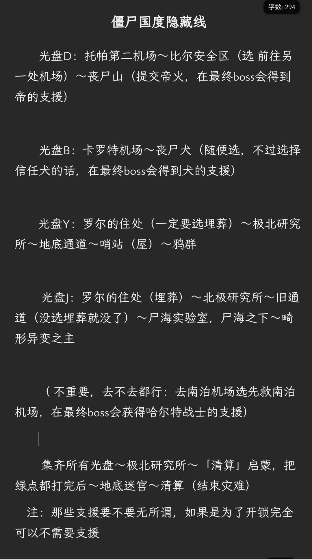 目前呢,我自己打出了2个隐藏结局,大家有兴趣可以看一下[表情_开心](分别是丧尸国度和武侠世界;前后顺序是我打的时候走的,不保证顺序、选项变动会不会影响走向,反正跟着走就行了;因为我懒得再试;欢迎补充) 1.丧尸国度 首先需要去罗尔的住处选择埋葬,这样就会发现手枪,然后待会去极北研究所与白德对话时就会开启支线“旧通道” 然后去过主线,一直打到打出“丧尸狗”的支线再停下,然后直接打这个支线,跟狗走并