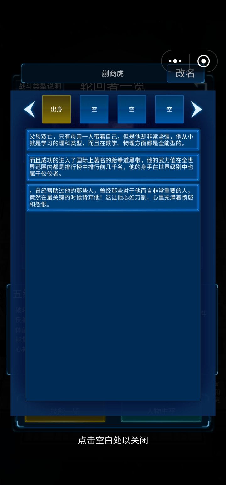 玩了这块游戏,圆了自己看小说时的梦想,但这款游戏体量太小,不过瘾,几经周折找到一款更精致的单机游戏《梦魇•无归》。这款游戏真的很惊艳,机制也更为复杂,体量大(十个世界任务),通关也可以多周目游戏(目前已经更新到5周目),唯一可惜的是游戏好像没什么人,目前已经一周目通关了。ps:这是我在tap平台唯二看到的无广告的免费游戏(作者太良心了)。