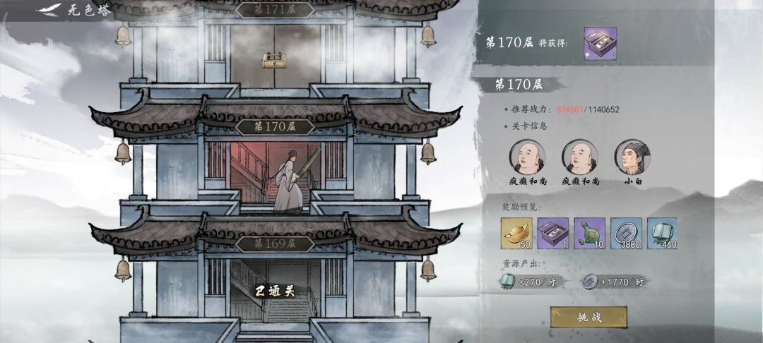 净空死后嘲讽+无敌,强度跟bug似的,再配合逆天倍率的夺魂手,超强的攻防直接爆杀五色塔。 二区今天刚解锁的净空和帕夏古丽,双太上洞玄经提速,目前五色塔从95已经突破到140了,感觉还能继续打。#攻略#墨剑江湖
