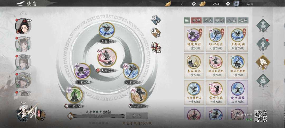 如图,技能招式追魂刀 月影 冰心 绝技凤舞 心法唐门的xx(忘了名字)轻功 素心 这阶段思路是峨眉保命有余清场不足,配上追魂刀集减气收割一体,为什么不用桃溪懂得都懂。pvp的话随从帕夏 唐让杏选个 自己看着办目的是把握对面的回气释放绝技的时机,当然不想用脑子也行,帕夏 让杏 芊芊妹妹都上。不过还是得额外养小福和瑶台打桩。 进阶思路——唐门心法可以减回气,灵狐闪避拉条机制如果真的实装,可以利用这