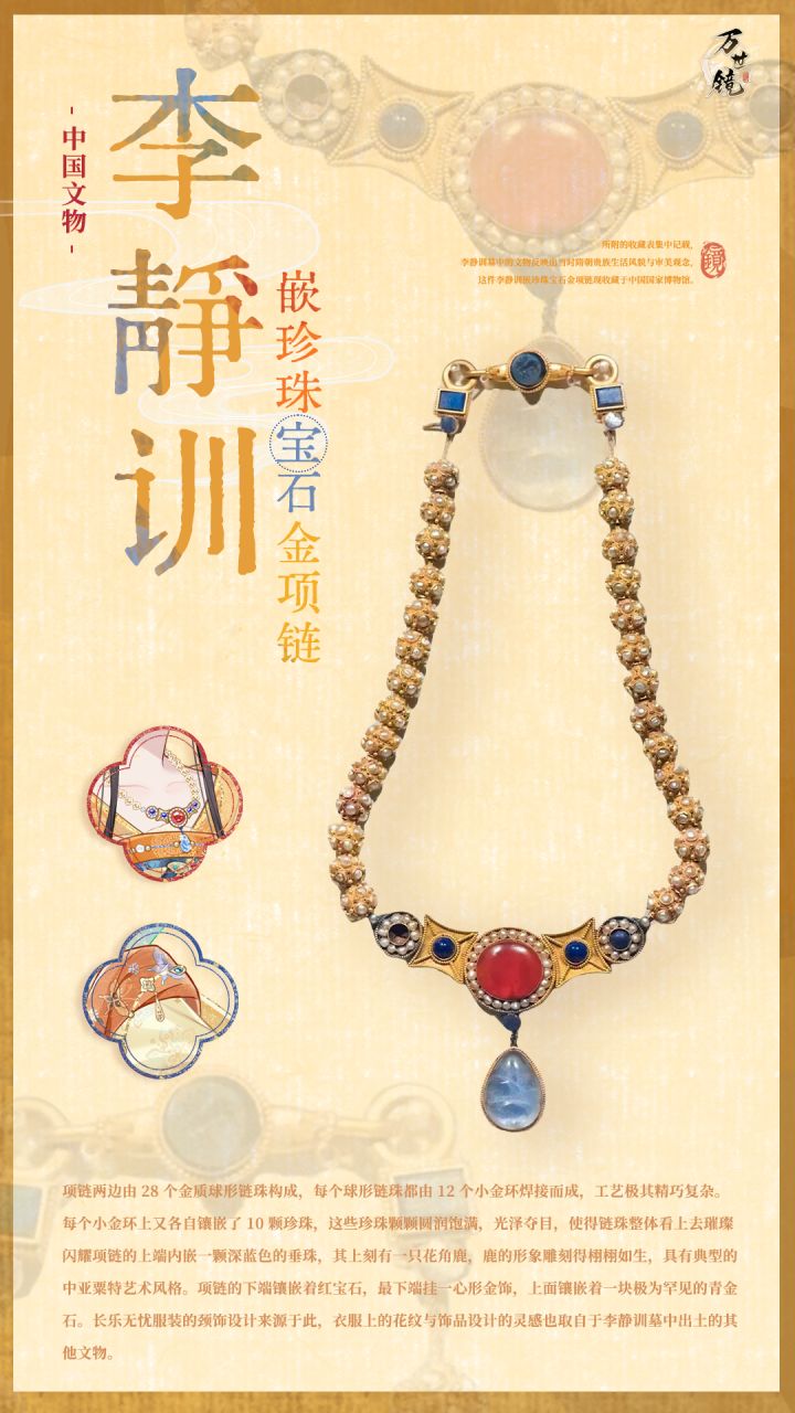“陶然无喜亦无忧,人生且自由。” ——张抡《阮郎归》【灵感.主题】“典藏·长乐无忧”的灵感来源于隋代李静训的首饰“闹蛾冠”&“嵌珍珠宝石金项链”。李静训,字小孩,出身贵族,其外曾外祖母是独孤伽罗,外曾外祖父是隋文帝杨坚。长辈们对她疼爱有加,都愿她只是一位无忧虑的小孩便足矣。在“闹蛾冠”的群花丛中,金光闪烁,蛾飞旋于花顶,恍若夜幕里的星辰。“嵌珍珠宝石金项链”由二十八颗金质链珠组成,其上又镶