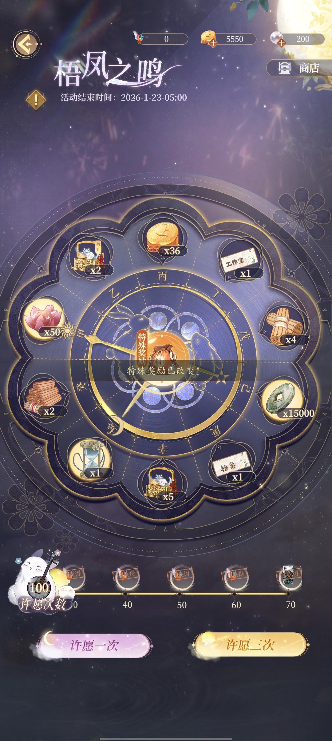 【活动】预告|梧凤之鸣,清啼击空 金笼栖凤,清音彻霄。一时困顿的凤凰,终会冲破囚笼,翱翔九霄。活动名称:限时活动-梧凤之鸣活动时间:2026年1月12日5:00—1月23日5:00活动套装:|天衣·有凤来仪|活动入口:游戏主界面-梧凤之鸣活动说明:①限时活动“梧凤之鸣”开启,机率获得【天衣.有凤来仪】套装;同时开启【珍稀级.风行】的累充活动②使用道具转动指针,可获得随机奖励;当日