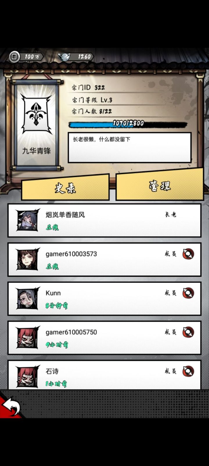 一区宗门搜九华青锋直接加,没宗门的赶紧来,长期活跃