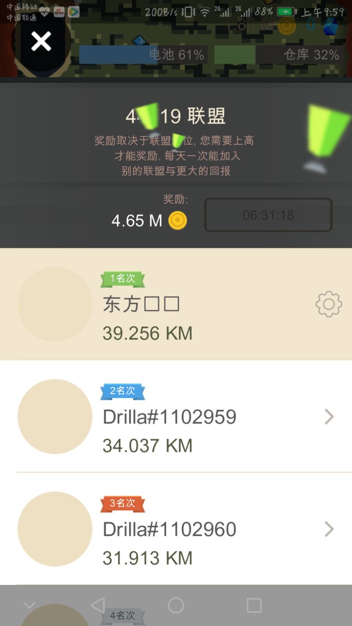 这个游戏不需要太花时间,电量点满,东西能升的升多余矿石买钱,然后就可以下了。没玩多久就下面这样了。然后有木有家族收我啊。