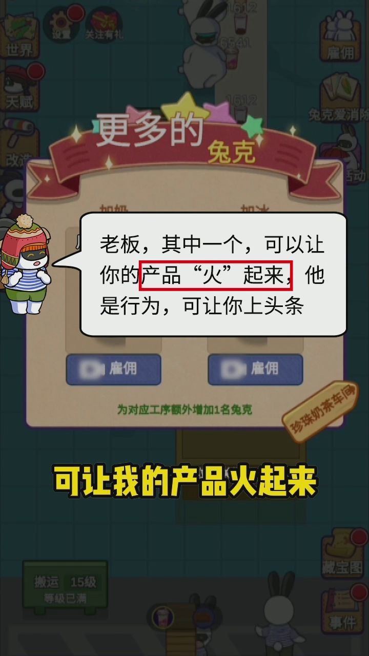 最近车间亏损严重 走哪都是E一把的感觉 你看这个麻辣烫车间 备菜的兔克再快又有什么用呢? 反正也会被后面的兔克偷吃 穿串的兔克因为喜欢 即使扎伤了手也没感觉 就像... 好了不装了,摊牌了 这就是一群没心没肺的老六兔克 瞧这口水都能加麻辣烫里 就问你6不6吧 加上科技和狠活 小味道一下子就上来了 E不住了,不E了 拥有这群老六兔克,每天都是充满欢乐 欢迎大家一起来兔克创业记感受快乐吧!