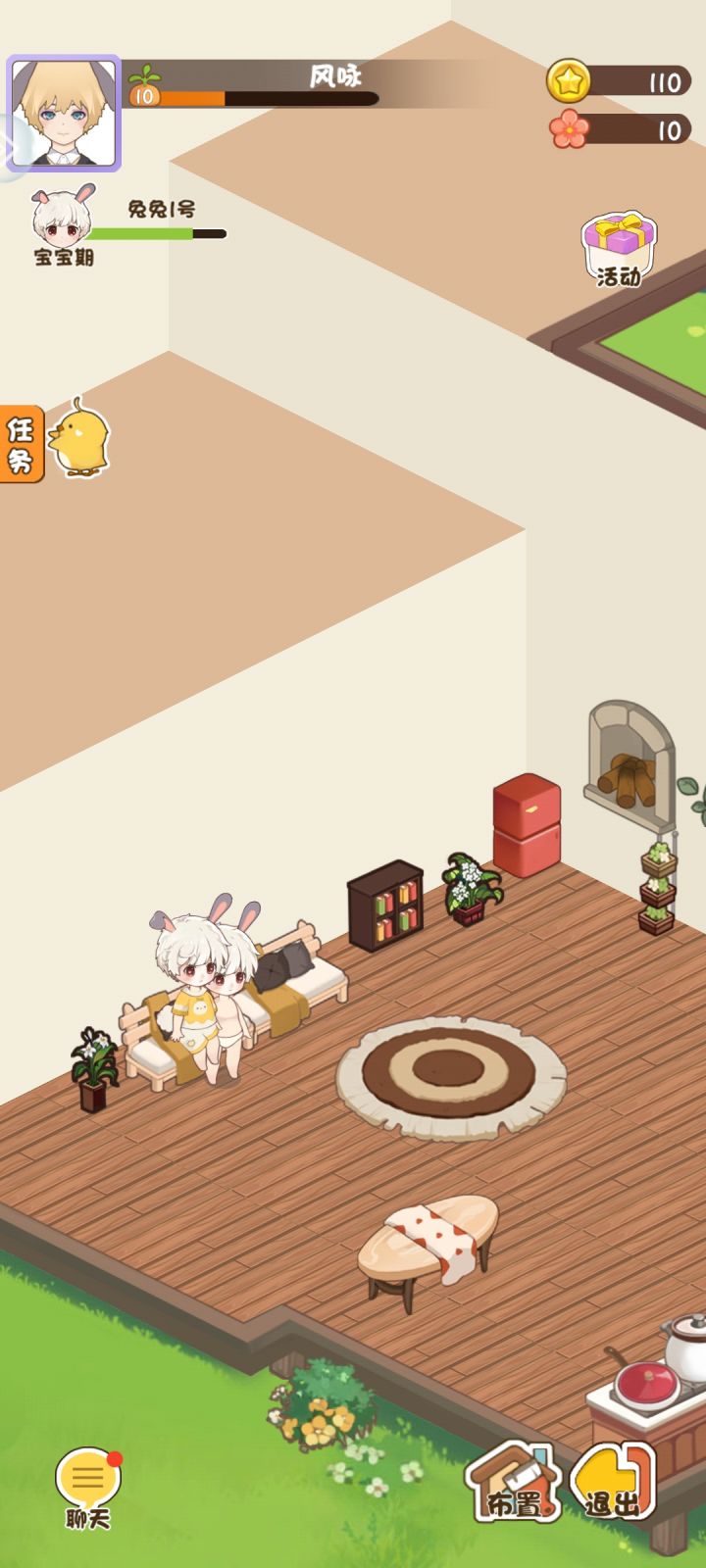 互动很少.希望后续能有个互动游戏这方面的增加吧.点击崽崽可以有一些互动行为.比如害羞.高兴.等等这些.