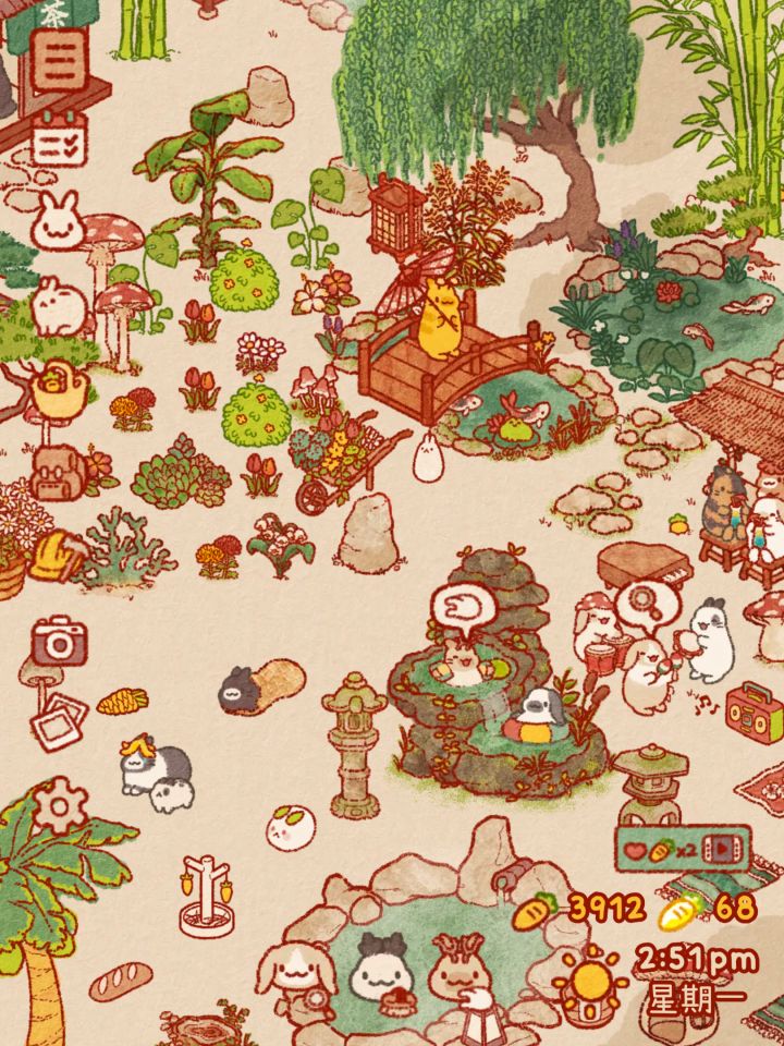 去年已经在别的渠道下载玩过了,对肝很好很休闲,主要是岛+海边装修放置家具景观来吸引不同种类的兔子来访留下胡萝卜,来的兔种类越多次互动越多,亲密值就更高,再用它们留下的胡萝卜来购置家具等,画风较唯美可爱,但是和兔子的互动性不高(可能现实中兔子就很高冷但是架不住它可爱)然后金胡萝卜不太好获得。