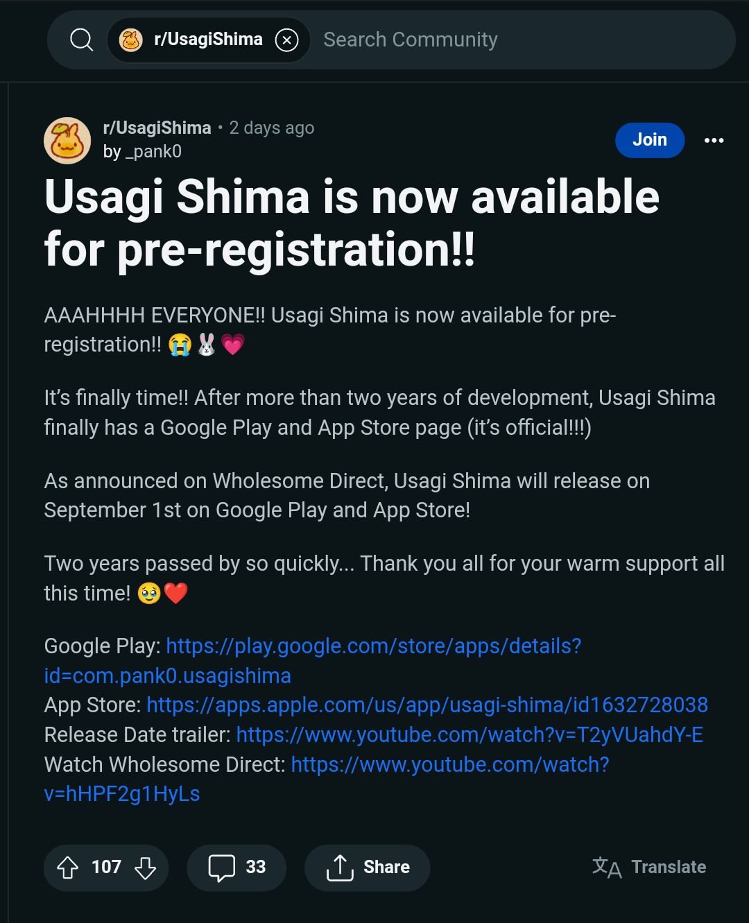 如题,且开发者在Reddit上表示游戏现在可以预约了(非国区) 国区具体发布情况,还是以国内合作的发行为准吧