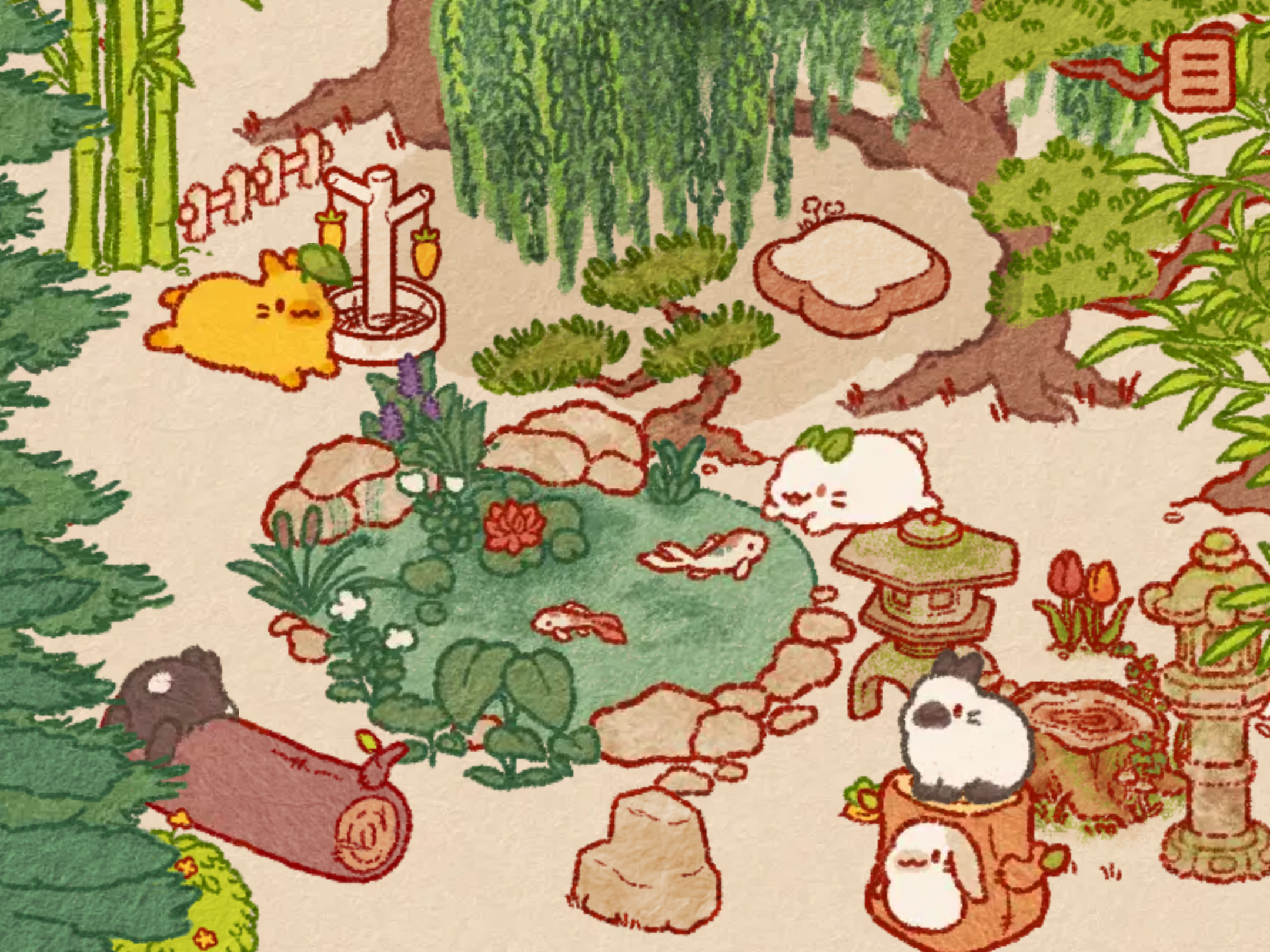画风很舒服,水墨画风,兔兔们都很可爱,还可以互动,分别是抚摸,喂食,拍照,捉迷藏四个,好感满了兔兔还会送你一个隐藏礼物,每一个礼物都不一样的,独一元二的,而且没强制性弹窗广告,看不看自己意愿,图片右下角爱心状那个就是看广告奖励翻倍,可看也可以不看,而且还可以氪金一个无广告的就是有点困难但是也没必要了,不过这也是Google唯一一款将进满分评分的休闲游戏,非常值得一玩