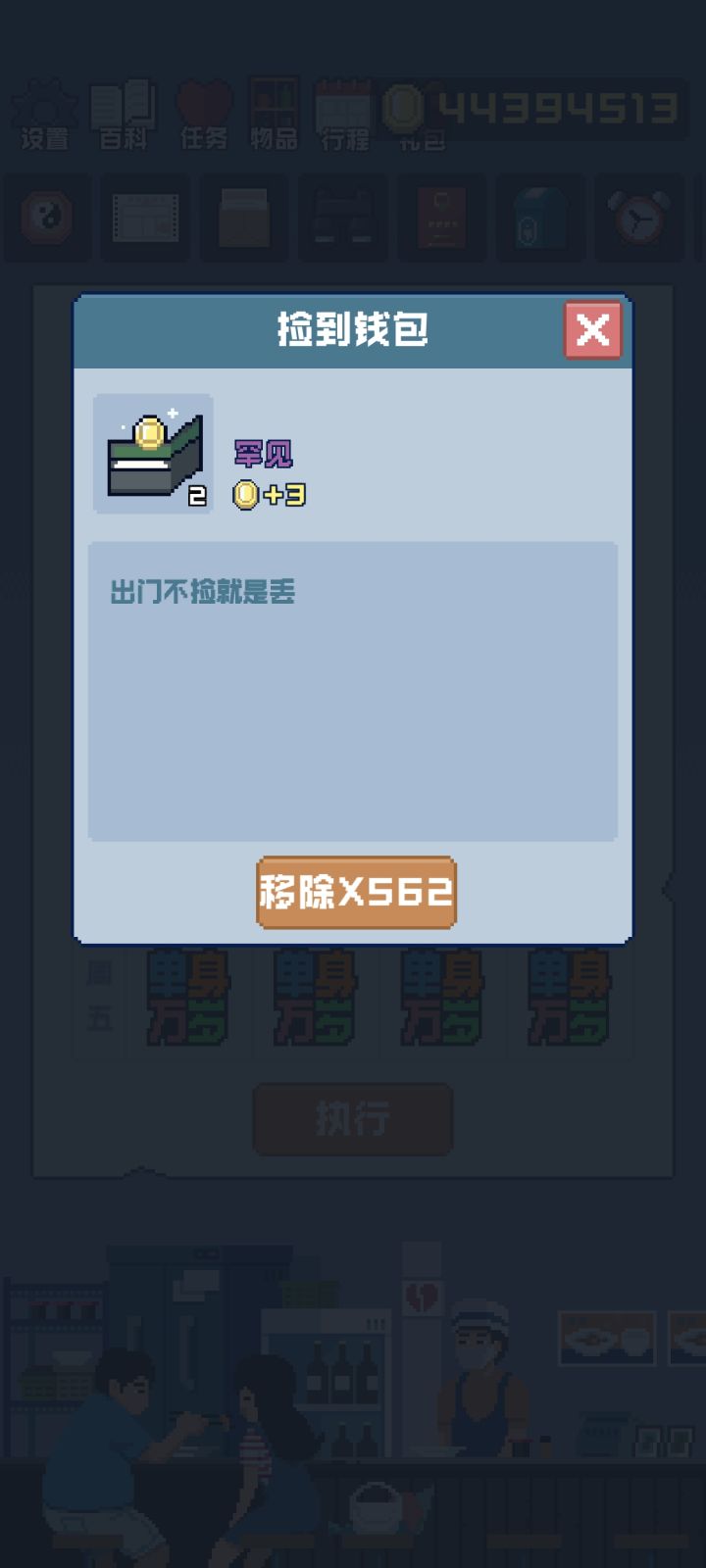 单身万岁x18捡到钱包x2核心物品是望远镜,效果每四周全物品相邻前期看到单身万岁记得统统拿上,要出18个单身万岁要很久很,前期看到街溜子记得拿,用来刷捡到钱包,前期可以多出捡到钱包来过渡然后记得再拿物品聚宝盆来攒删除币,后期要删多余的捡到钱包