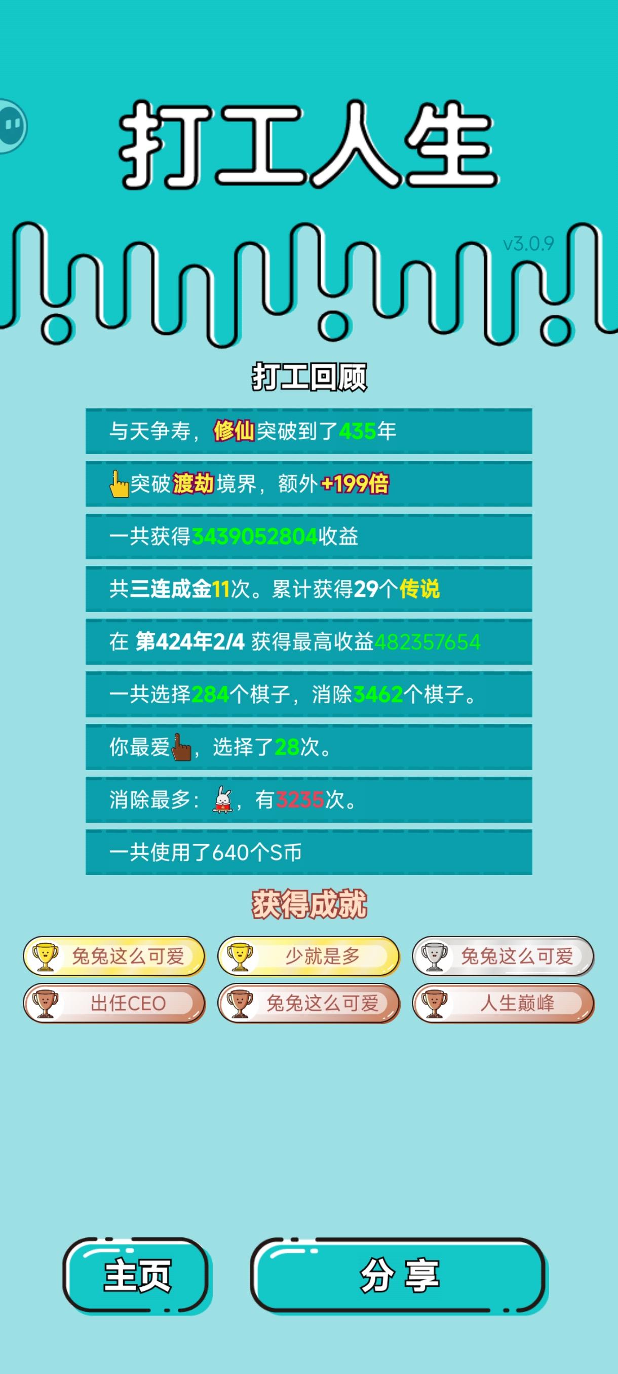 (2)前期主线需要苟住20年还清债务3次,便开启无尽模式,当来到60年时,可选择“修仙”模式,届时会增添成长型“修仙棋子”及玩法规则~