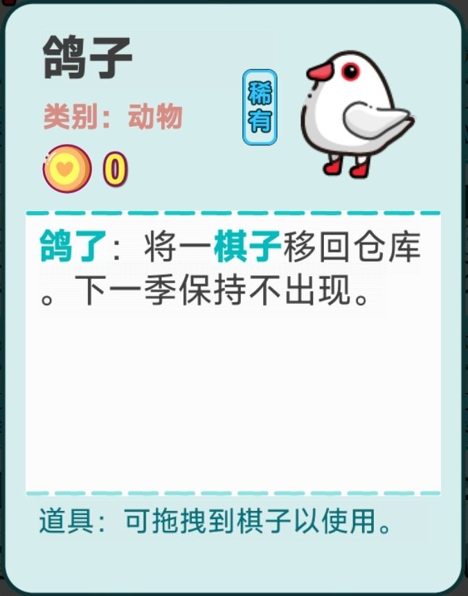 1、新增棋子标本,可将一棋子放到道具栏再使用; 2、新增传说天赋,水果贵族; 3、调整胡萝卜,给相邻兔子收益为自己的收益; 4、调整龙眼,每+5收益,添加一个桂圆; 5、调整西瓜,本季每+6永久收益,添加一半西瓜,有1%几率自爆; 6、优化选择面板的选择效果; 7、新增多个成就; 8、修复股票在投机触发的切换效果不准确; 9、稍微优化投资流的动画时间。#攻略#游戏讨论#游戏安利#单机游戏