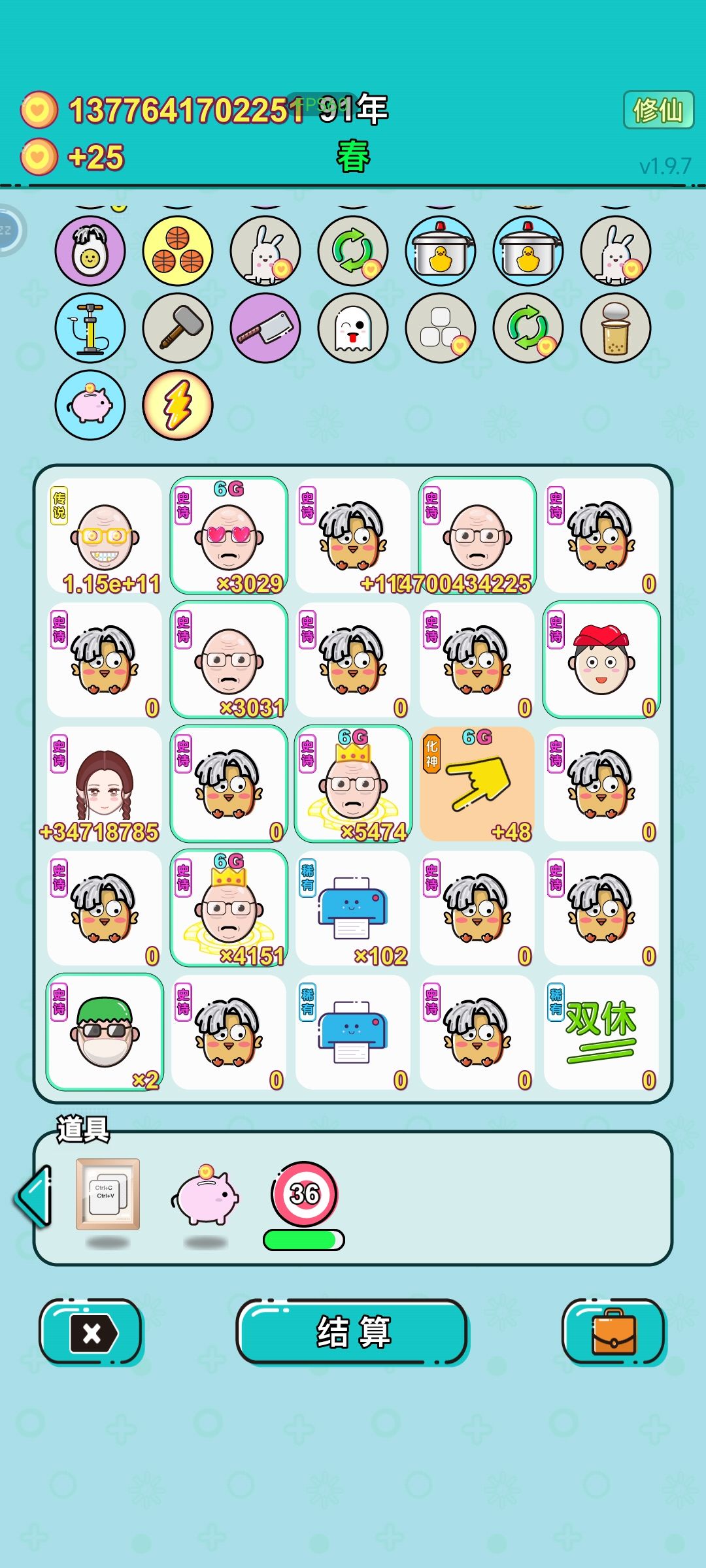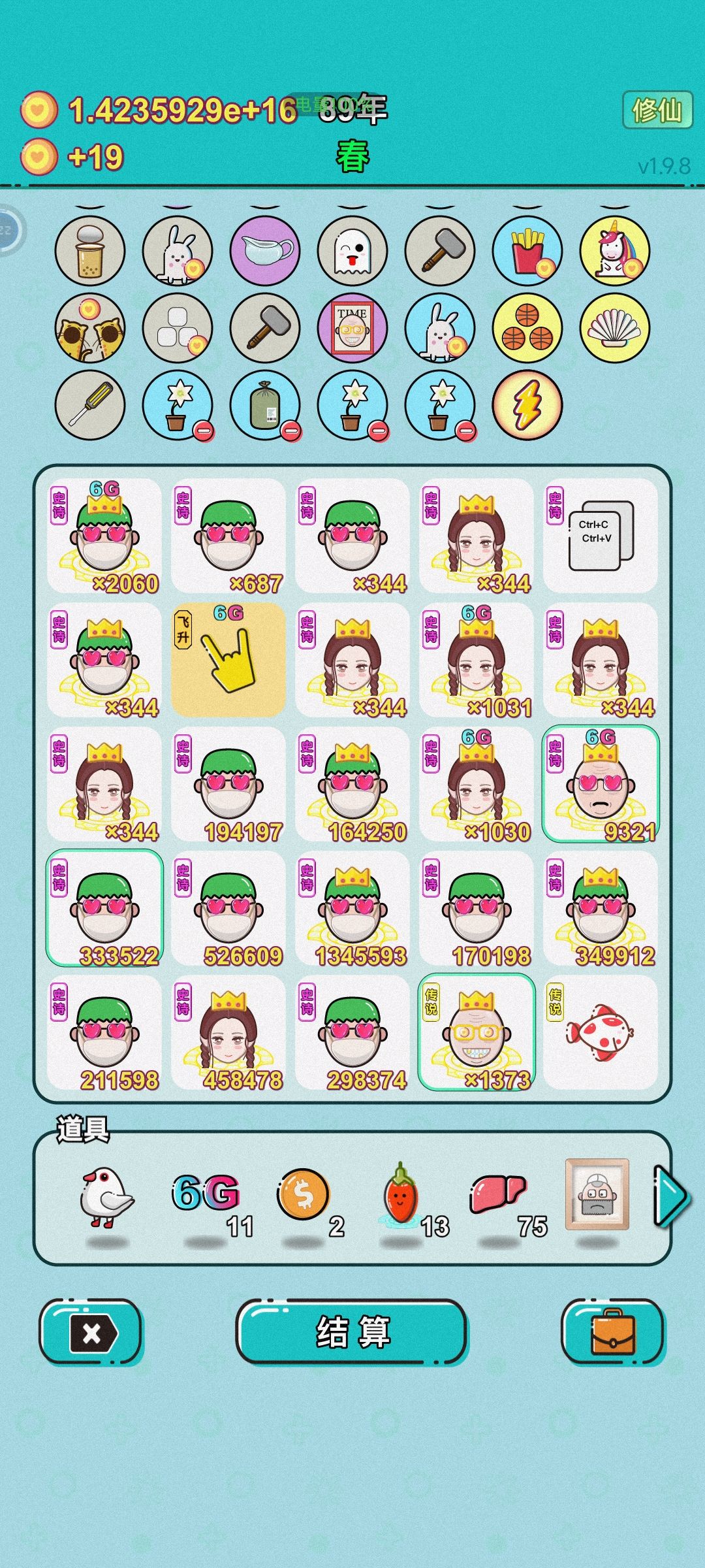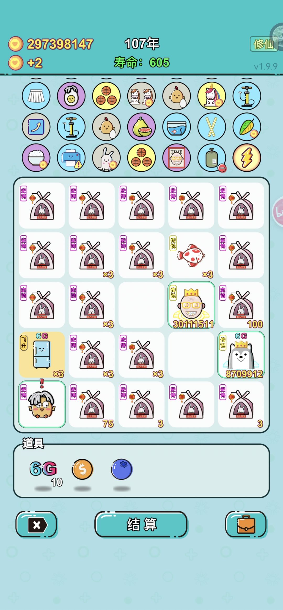 我虽然没有过600年,但是过600年真的很容易,只要你不是修仙70成功率的情况也能失败两次的运气。如图,最高单次结算实际超过了40次方,最高一次没截上,我这把真是运气太差了,经历过40年前一个6g没有,经历过中期首富被劈死,经历过三个潜质老板合成第二个首富被噶了,还好后期刷到了首富一直在场的天赋(108年刷到的,运气也是有点差),经历过60,70成功率修仙失败共两次,始终没刷到增加6g上限的天赋,