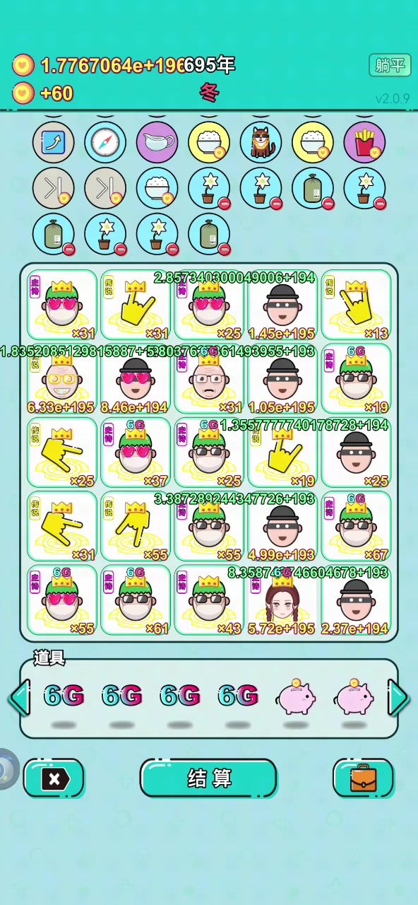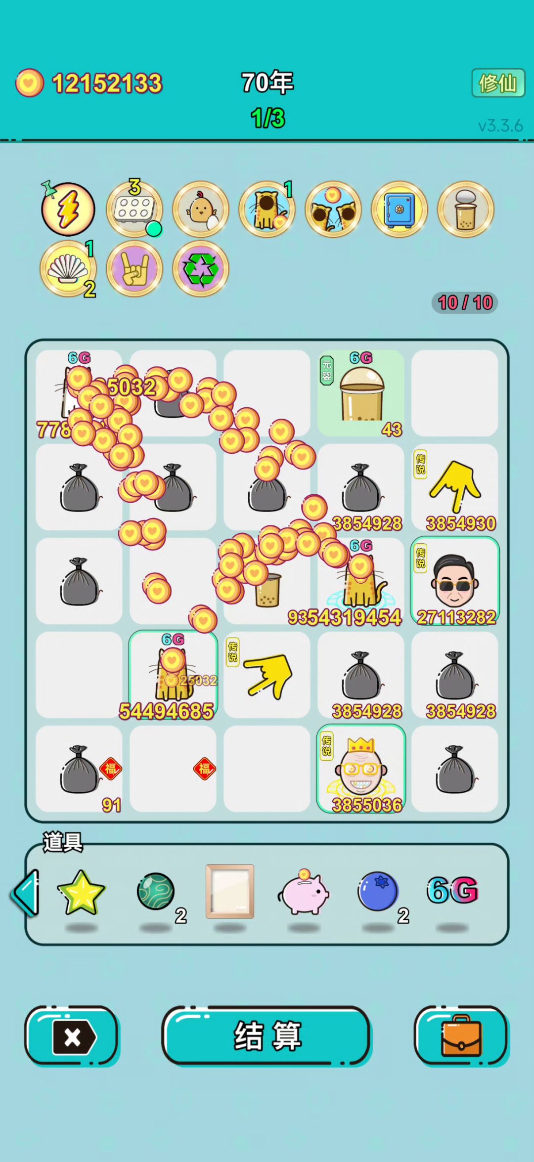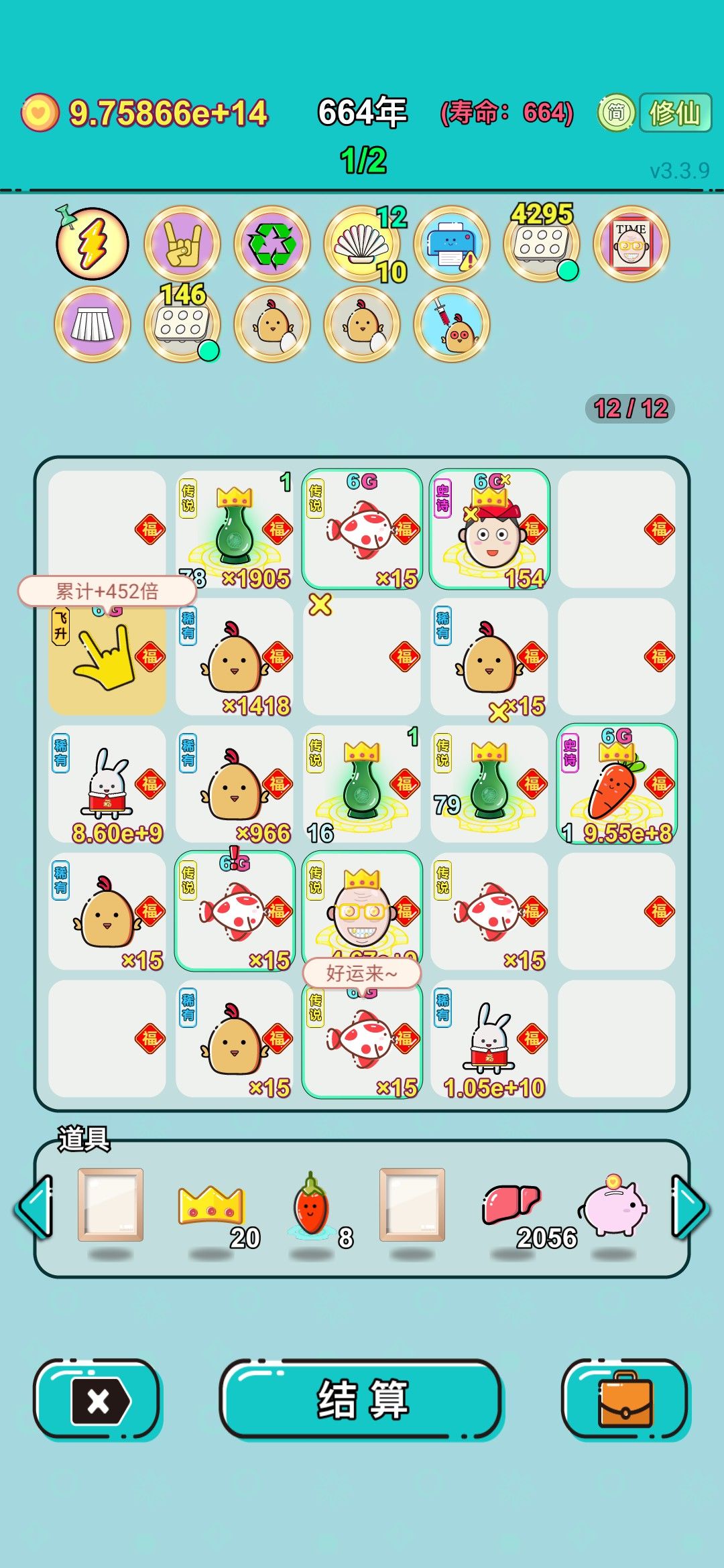 (+1)复制2+(撒币)兔窝1+6G(吞噬)狼王1+[兰花(生鬼)]+6G(翻倍)无常2+6G(相邻)国宝2+[国宝共享]+(1个枸杞)竹子+(指向翻倍)手指2+[多向指]+6G(重新指)明星2 注意事项:拒绝水果!很容易场面失控破坏布局 修仙:奶茶>冰箱> 龙眼,手指X