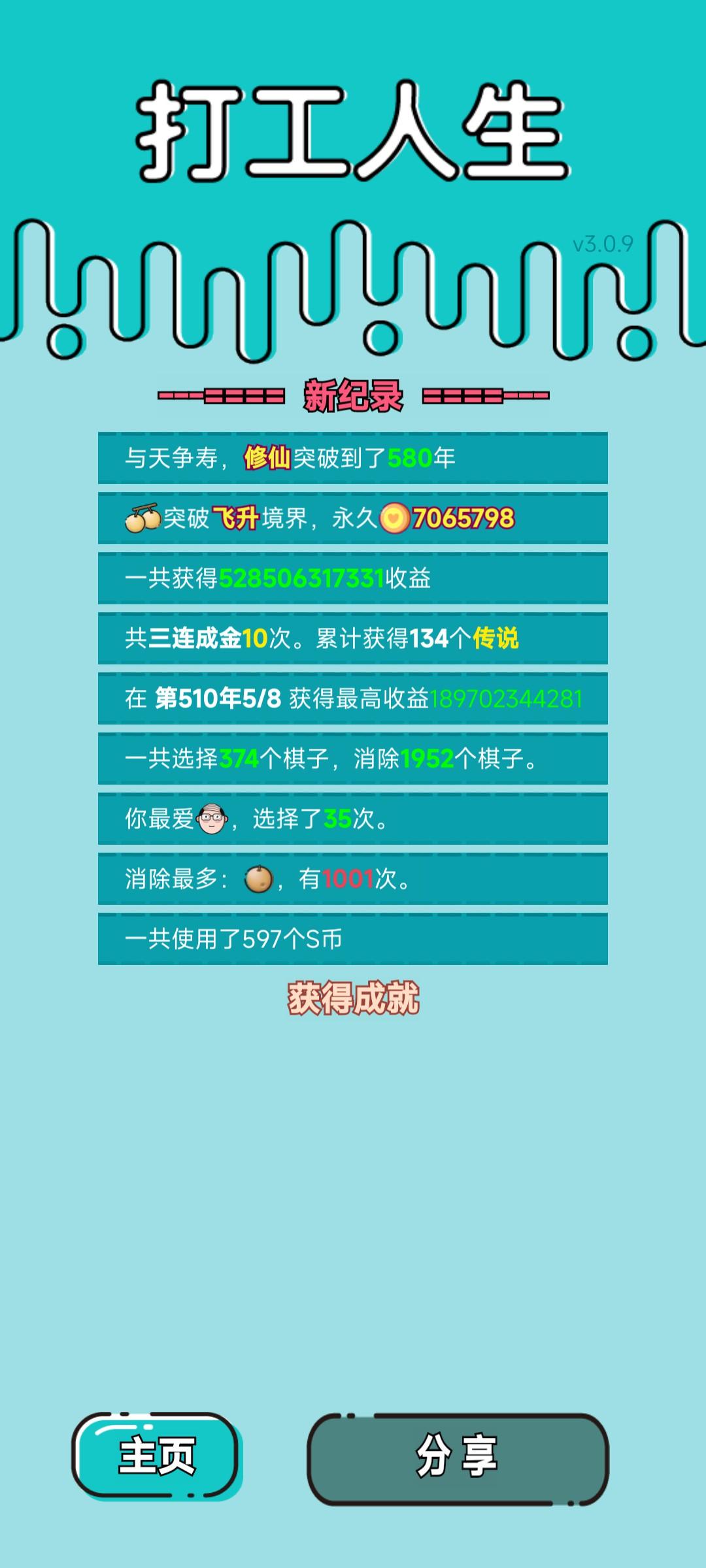 我打工坚持了580年。共获得528506317331收益。累计获得134个传说棋子。共选择374个棋子,消除1952个棋子。我最爱主管,选择了35次。#单机游戏 #游戏推荐