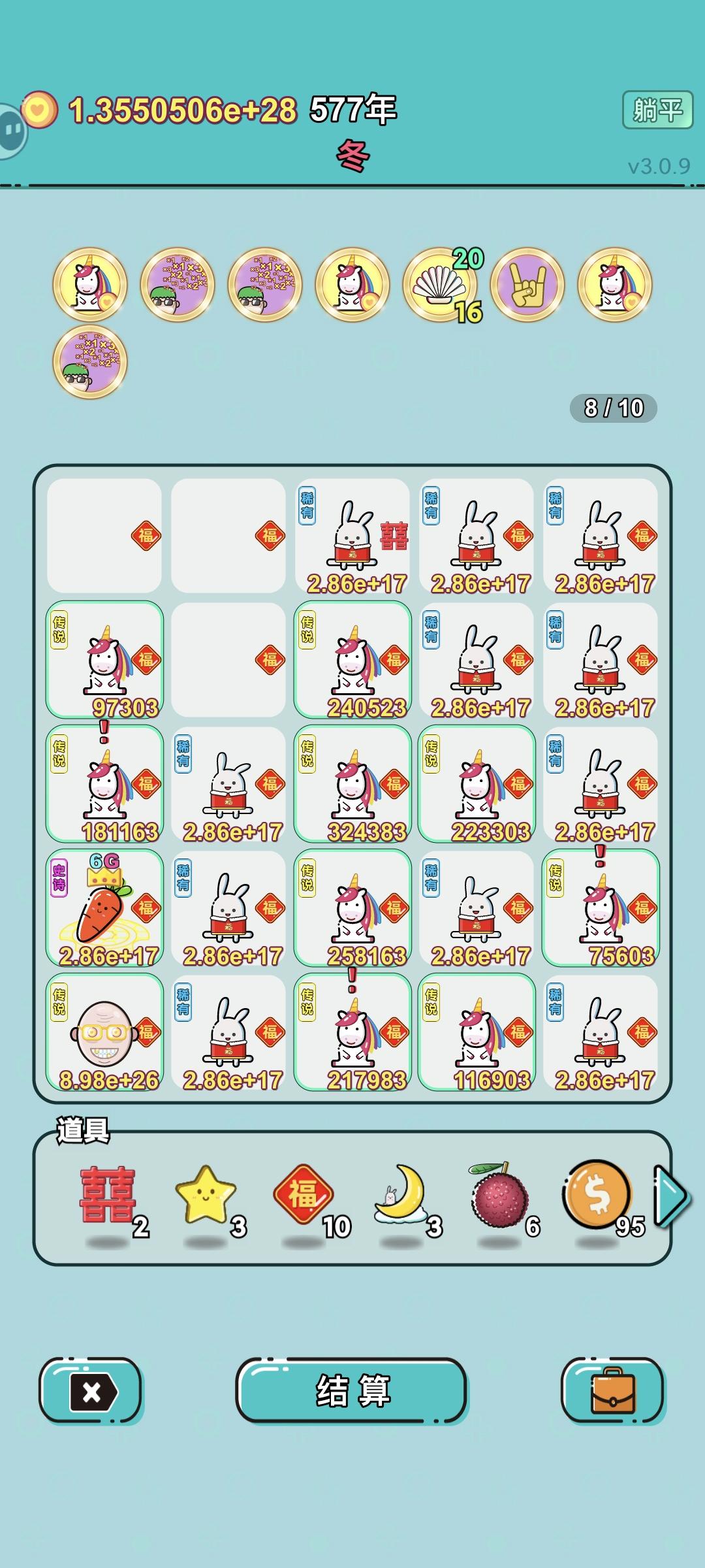 我打工坚持了210年。共获得1.776088148e+19收益。累计获得164个传说棋子。共选择195个棋子,消除266个棋子。#单机游戏 #游戏推荐
