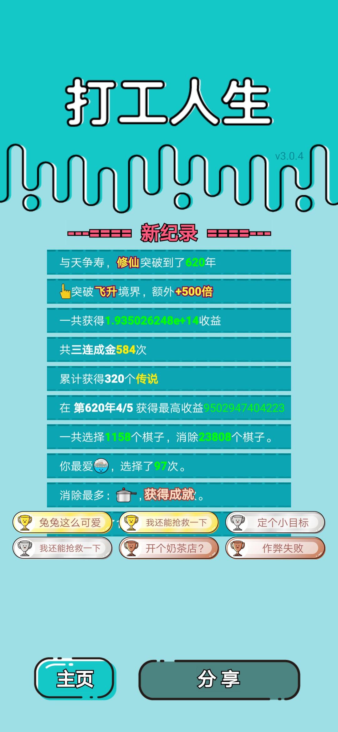 我打工坚持了620年。共获得1.935026248e+14收益。累计获得320个传说棋子。共选择1158个棋子,消除23808个棋子。我最爱翻倍盲盒,选择了97次。获得了6个成就!#单机游戏 #游戏推荐