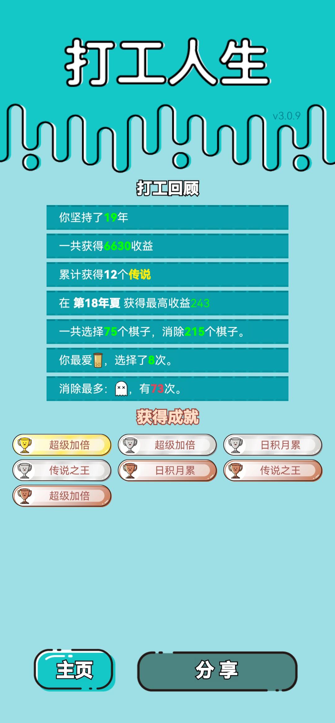 我打工坚持了19年。共获得6630收益。累计获得12个传说棋子。共选择75个棋子,消除215个棋子。获得了7个成就!#单机游戏 #游戏推荐