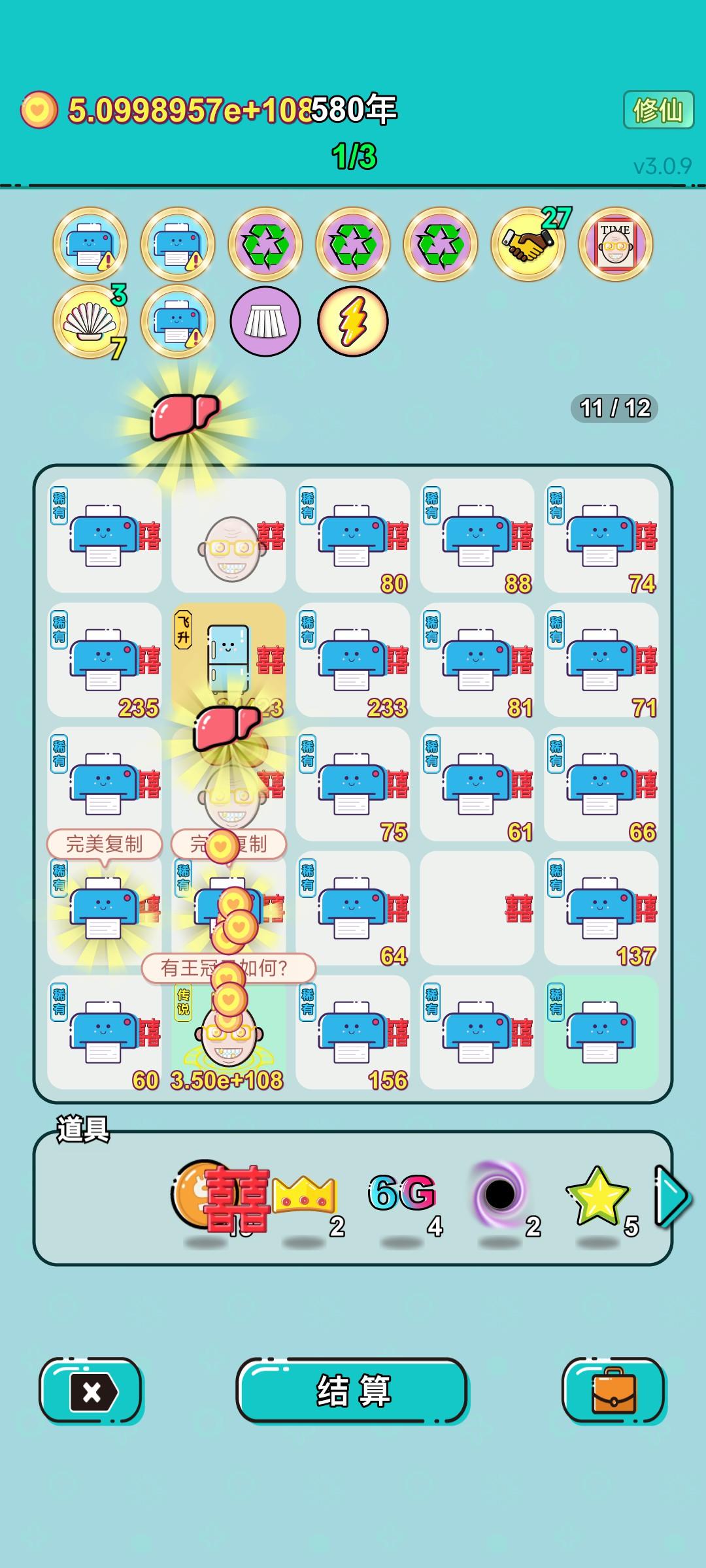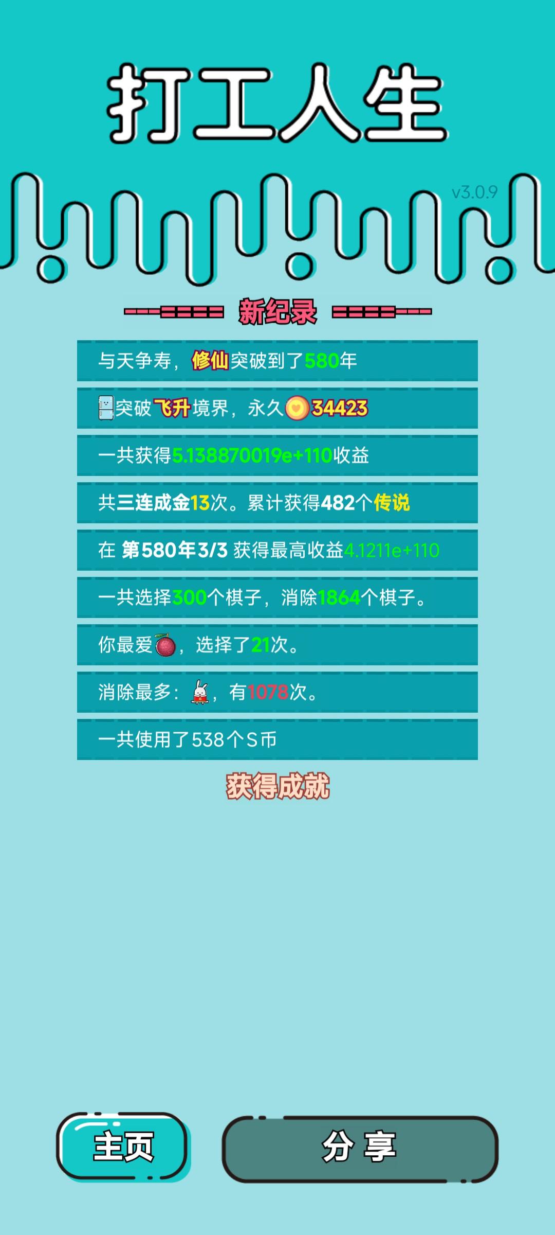 我打工坚持了580年。共获得5.138870019e+110收益。累计获得482个传说棋子。共选择300个棋子,消除1864个棋子。我最爱杨梅,选择了21次。#单机游戏 #游戏推荐