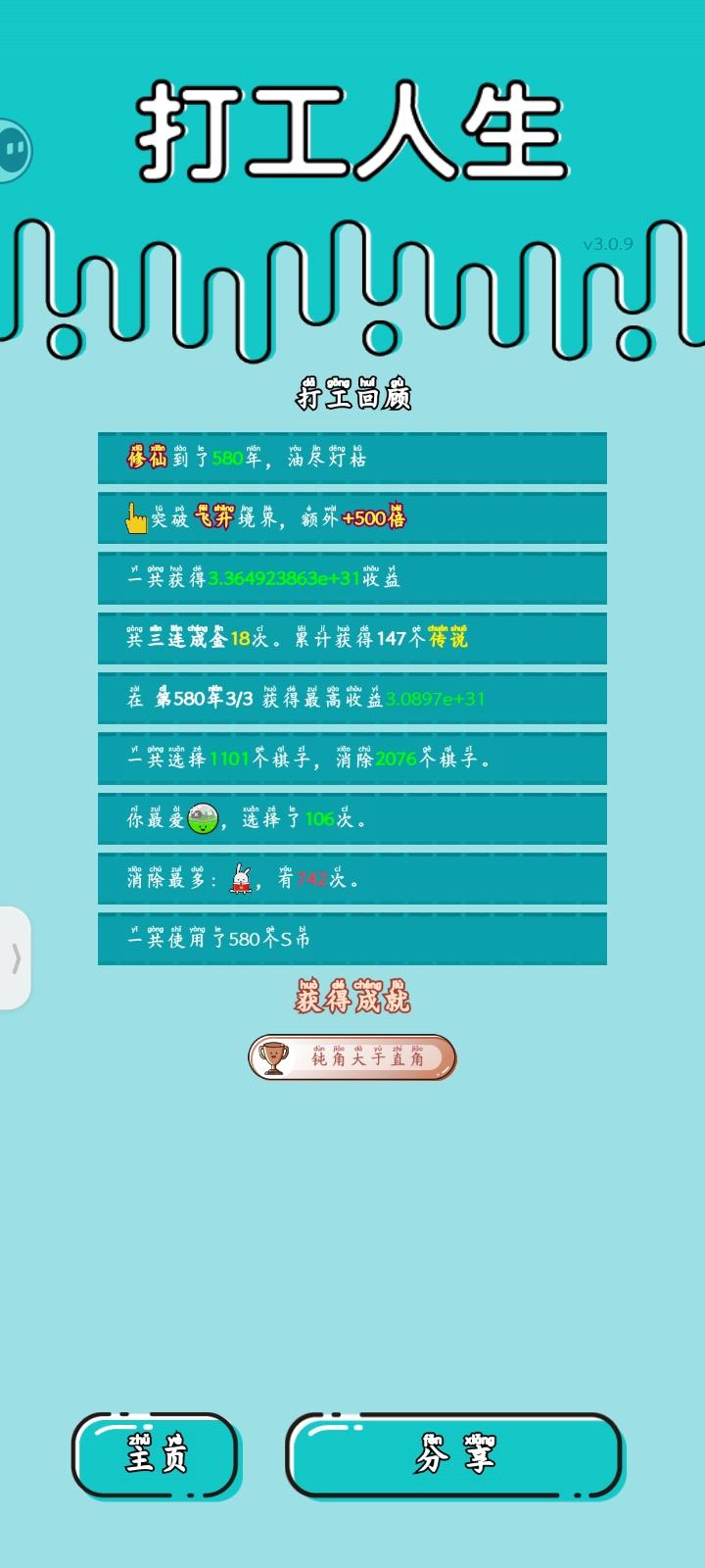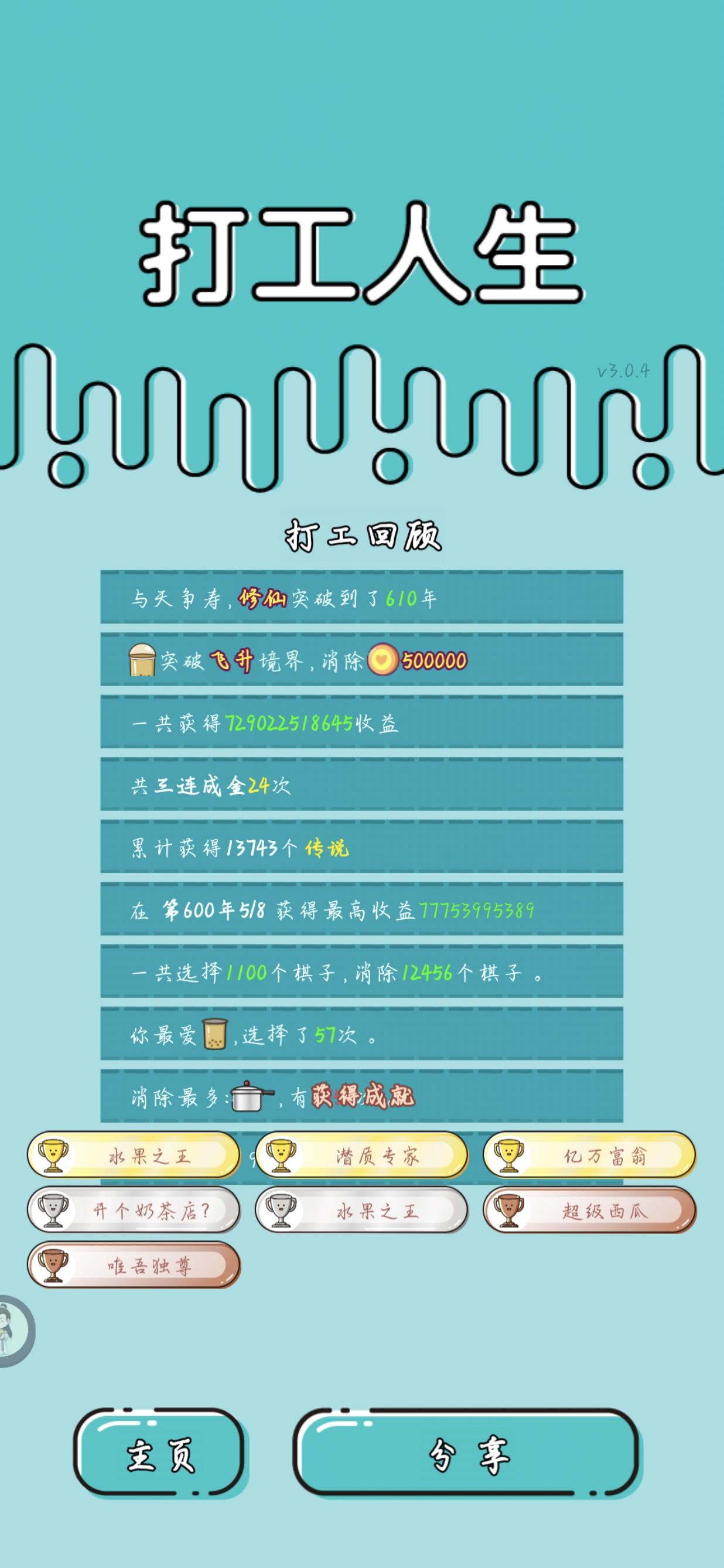 我打工坚持了46年。共获得1235888204收益。累计获得11个传说棋子。共选择150个棋子,消除298个棋子。获得了11个成就!#单机游戏 #游戏推荐