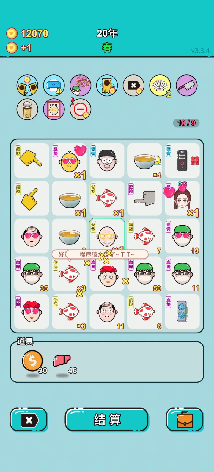 1、更换游戏软件图标;2、优化明星潜质的动画效果;3、冰箱转化其他棋子为水果的潜质,调整为不能吸收水果;4、调整定制:每年获得S币数+1,同时可上限+30;5、调整商店观看视频获得S币,也可同时增加上限;6、优化多次天赋选择会被顶掉的问题;7、优化猫共享次数太多导致卡顿的问题;8、优化游戏结束回顾展示里S币图标不正常显示的问题。#roguelike #单机游戏 #打工人生 #欧皇附