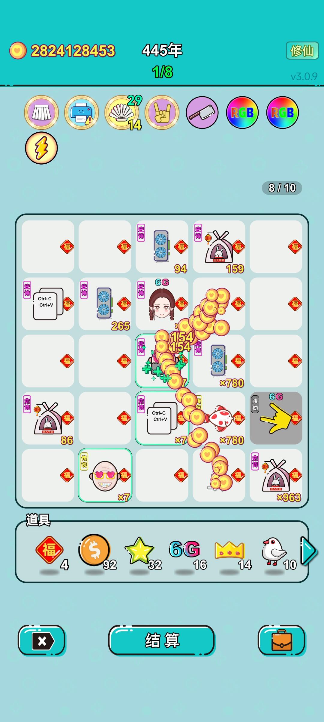 我打工坚持了445年。共获得1344460145650收益。累计获得80个传说棋子。共选择411个棋子,消除2235个棋子。我最爱杨桃,选择了42次。获得了1个成就!N值根本叠不上去,钱花不完就没了#单机游戏 #游戏推荐