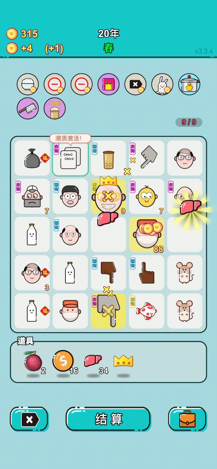 1、更换游戏软件图标;2、优化明星潜质的动画效果;3、冰箱转化其他棋子为水果的潜质,调整为不能吸收水果;4、调整定制:每年获得S币数+1,同时可上限+30;5、调整商店观看视频获得S币,也可同时增加上限;6、优化多次天赋选择会被顶掉的问题;7、优化猫共享次数太多导致卡顿的问题;8、优化游戏结束回顾展示里S币图标不正常显示的问题。#roguelike #单机游戏 #打工人生 #欧皇附