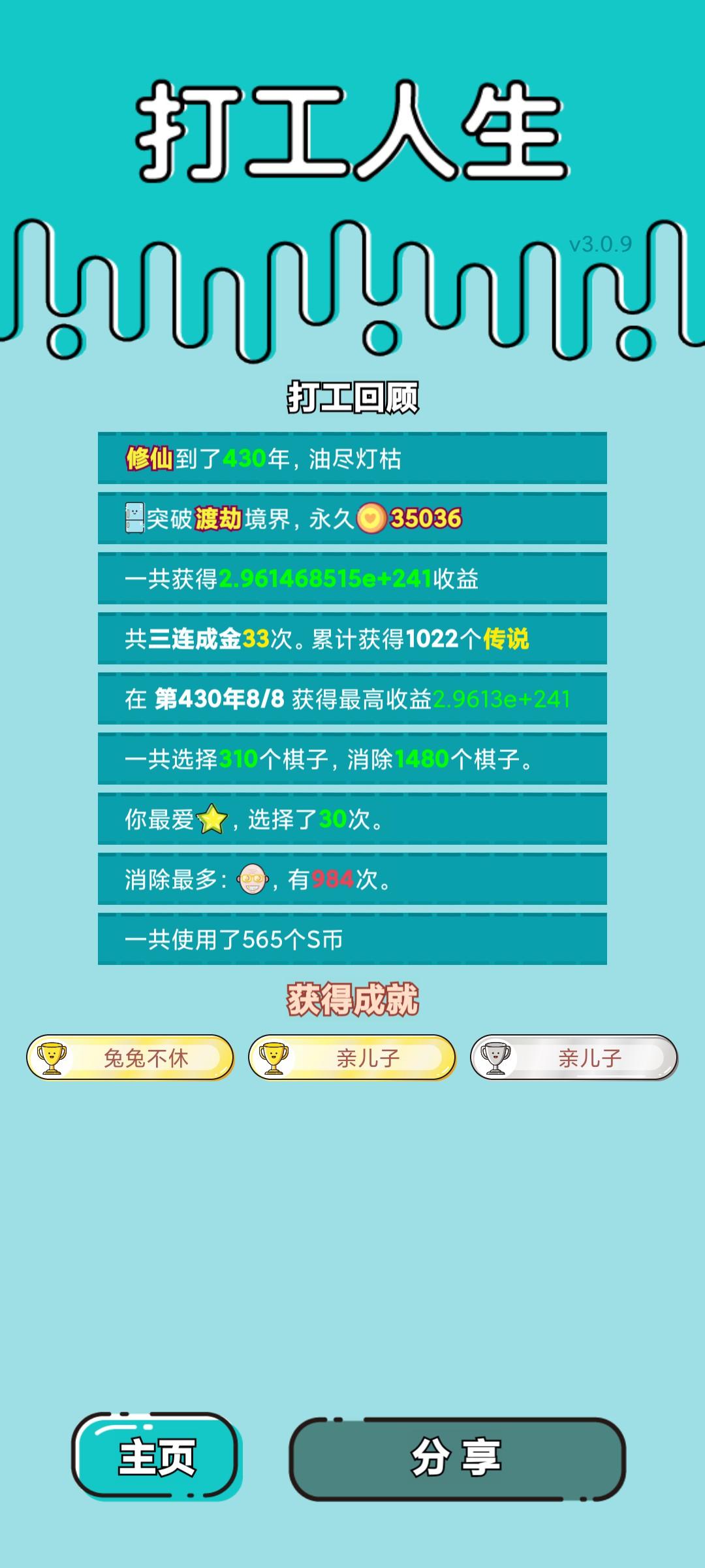 我打工坚持了430年。共获得2.961468515e+241收益。累计获得1022个传说棋子。共选择310个棋子,消除1480个棋子。我最爱杨桃,选择了30次。获得了3个成就!#单机游戏 #游戏推荐