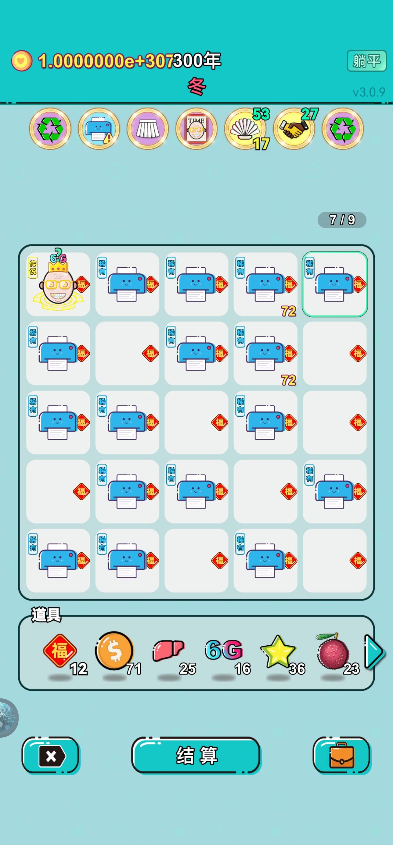 我打工坚持了620年。共获得9.999999999e+306收益。累计获得1089个传说棋子。共选择523个棋子,消除2131个棋子。我最爱一块西瓜,选择了40次。获得了3个成就!#单机游戏 #游戏推荐