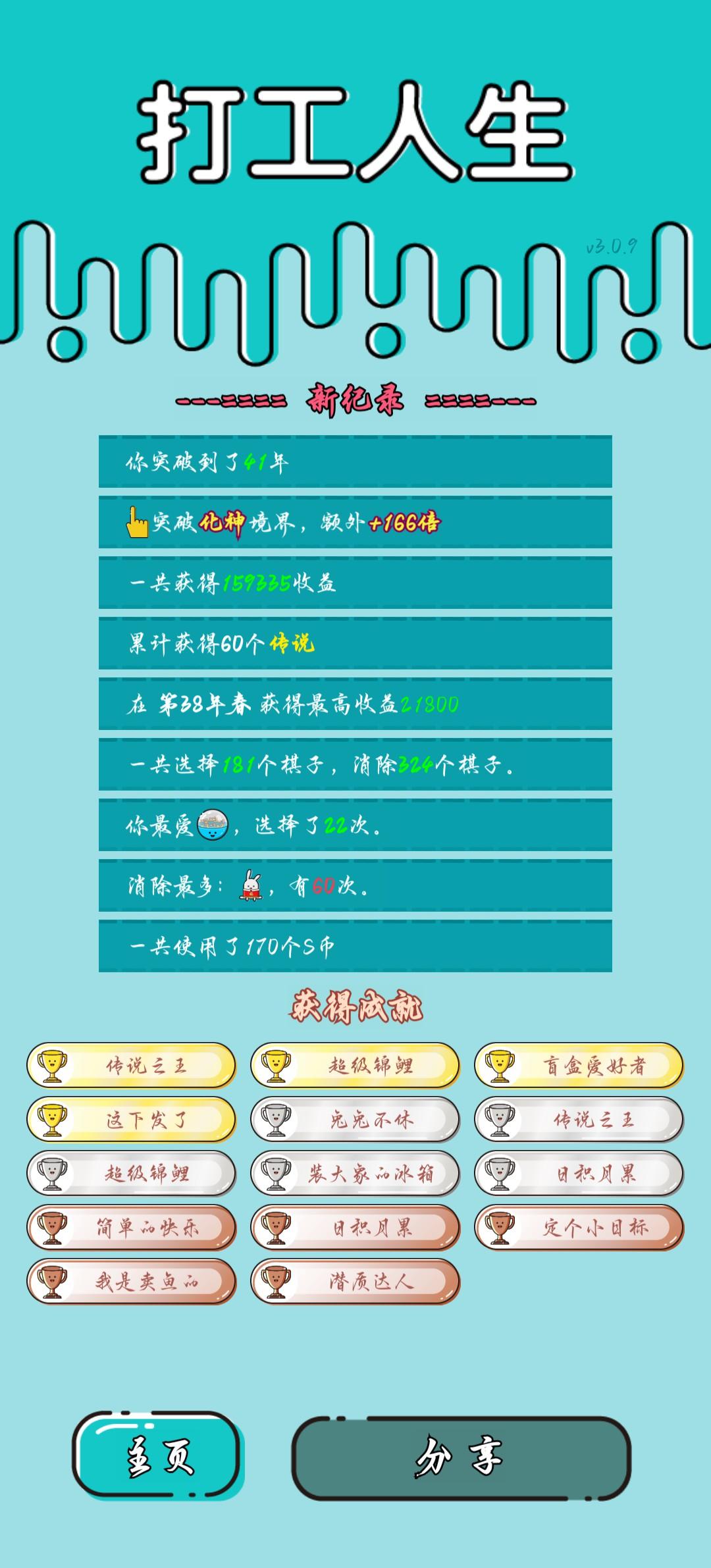 #单机游戏 #游戏推荐 我打工坚持了41年。共获得159335收益。累计获得60个传说棋子。共选择181个棋子,消除324个棋子。我最爱翻倍盲盒,选择了22次。获得了14个成就!