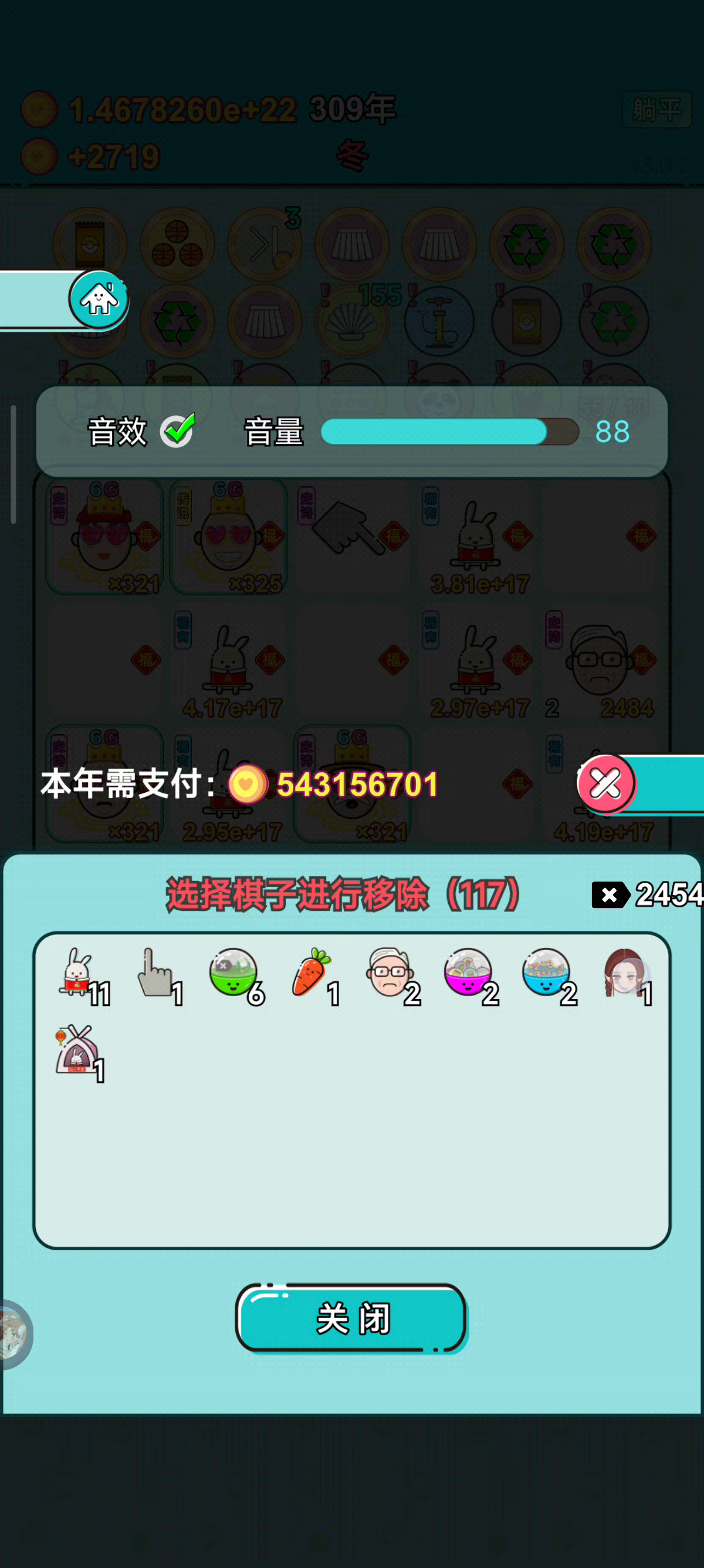 每次删除都要反反复复删除好几次,经常删不干净。还有超过上限的天赋回合结束能不能自动出售啊,每次手动卖挺久的