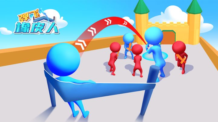 《弹飞橡皮人》是动作射击类游戏,会更轻松的打败对手会更轻松的打败对手,不要弹射到敌人的保卫中,若是击中了我方军团则能够融合进化,将我方士兵放置在类似的弹弓装置上然后瞄准敌军射击。