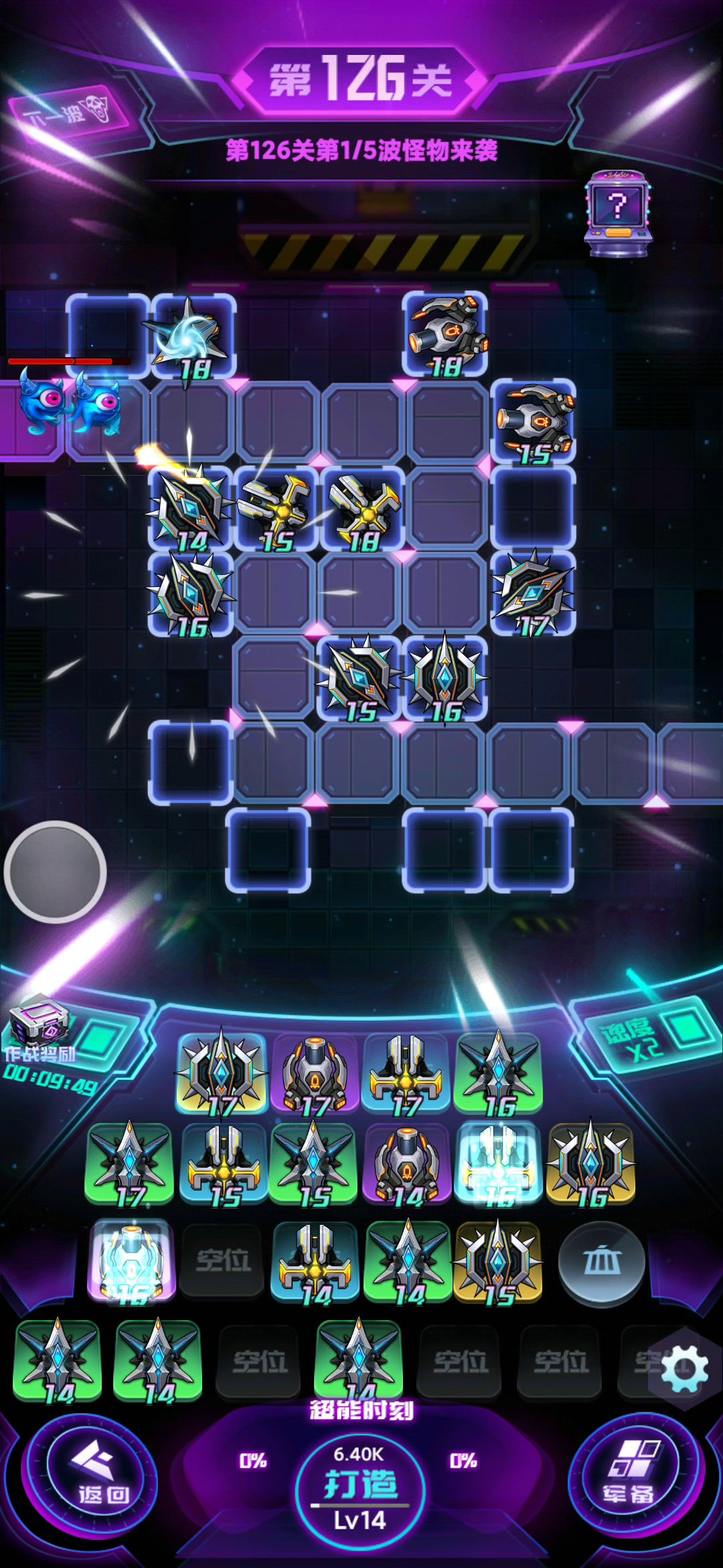 不知道怎么卡的,我就调换了一下液氮炮台的位置,boss就不动了,本来是打不过的,硬是磨过去了