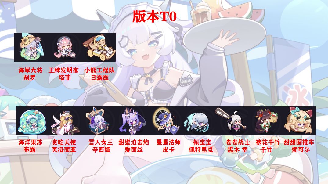 由于本榜单是根据角色强度上限排名的,基本都是五星+满级表现,不具备新手推荐价值。建议养完前期角色再来看(氪佬请无视警告)。 其中有争议点: 1.佩宝竞技场太逆天了,确实可能不适合放在普金,但平常不适合。 2.有些是陷阱,比如 (1)星法低星伤害太低。 (2)裱花2星才能用,但被本地图生产秒追上然后吊打。 (3)菜狗目前只有在水里有用 (4)奶妈实际现在没有就业方向,辅助力...太拉跨了!(具体表现