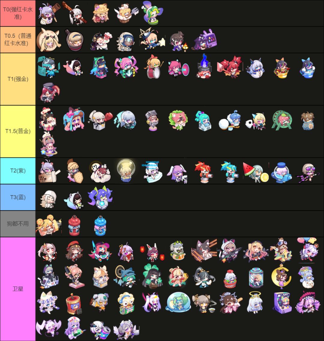 由于本榜单是根据角色上限排名的,不具备新手推荐价值,建议养完前期角色再来看(氪佬请无视警告)。 本榜单是预测公测可能会出什么角色,所以有卫星很正常,请无视,其位置为内测角色强度。
