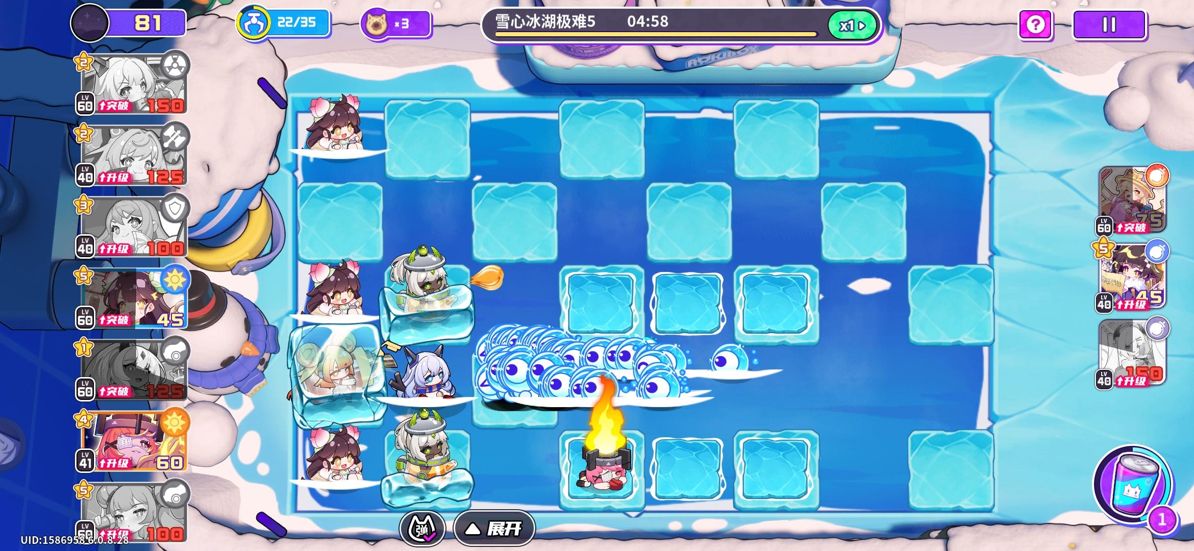 经典少女+猫(或大将)控制配合4排输出阵容,少女和猫的控制很重要。低氪只抽5星异界角色,拿来当输出。全程挂机都行,经常被红色炸就把那排向日葵卖了战线后置,第十关被炸也无所谓
