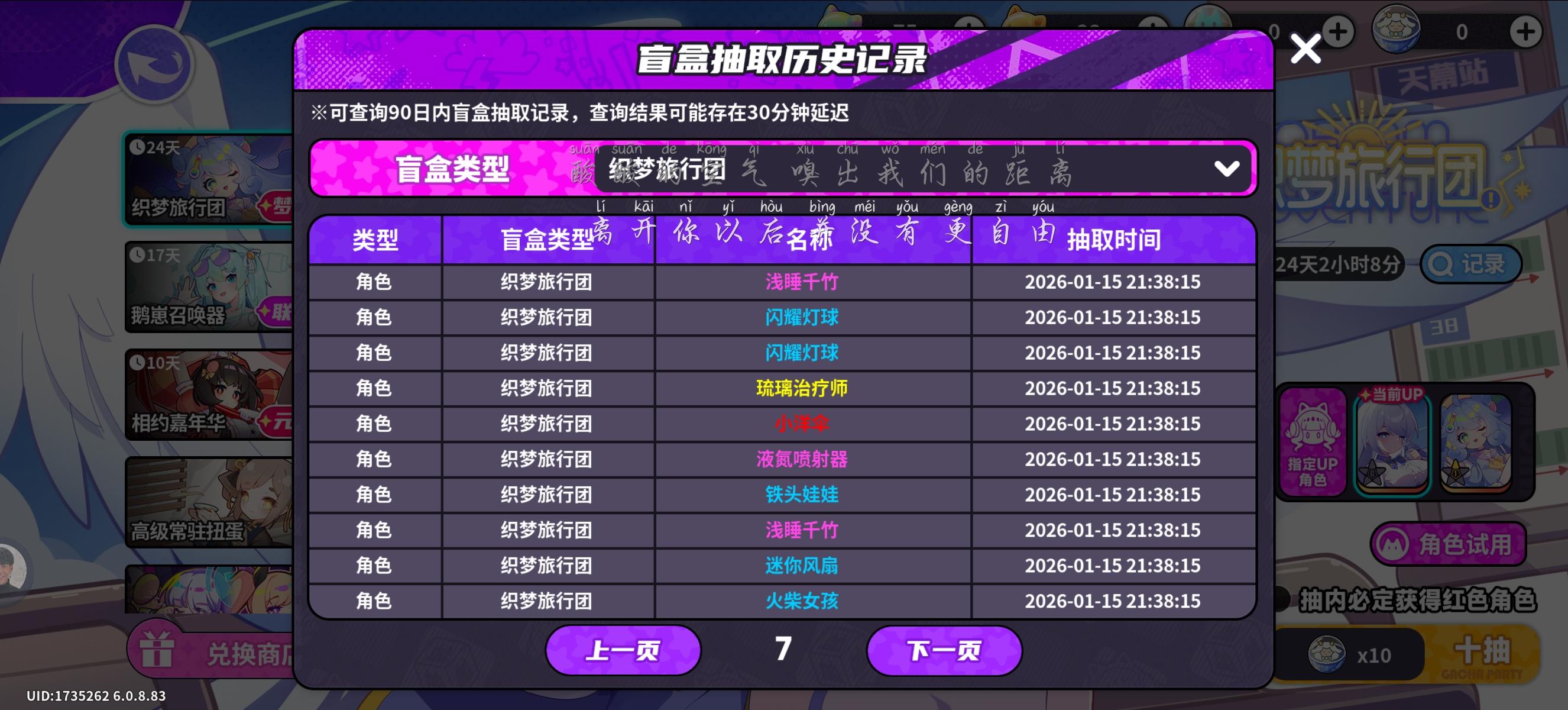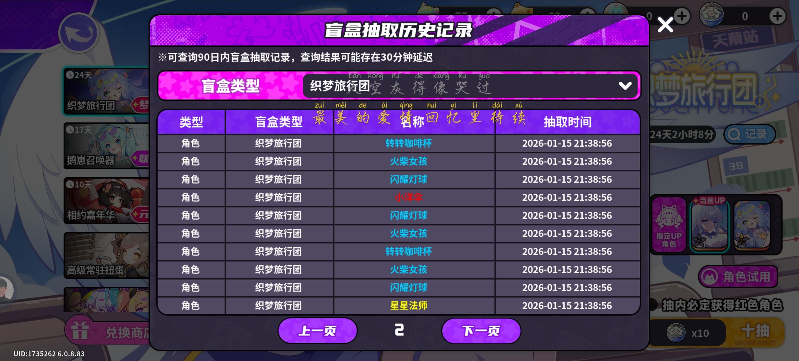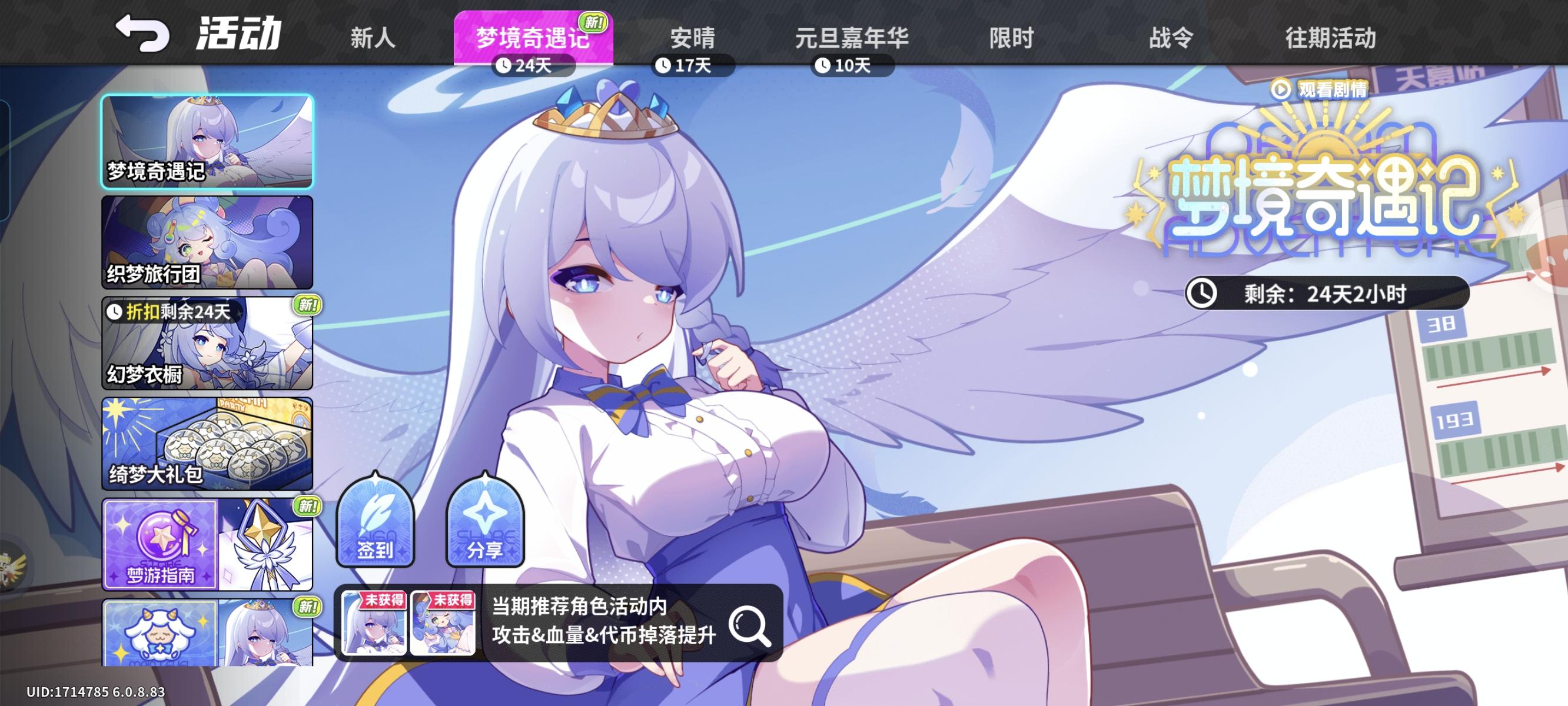 亲爱的班长大人:感谢您一直以来的支持与反馈!我们刚刚进行了热更新,具体内容如下:【梦境奇遇记活动开启】活动时间:2026年1月15日热更新后~2026年2月8日23:59活动内容:✦ 登录福利:邮箱发放「幻梦扭蛋」×10、签到奖励等✦ 梦游指南:使用「绮梦星星」兑换「幻梦扭蛋」、「梦境云朵」、角色突破材料等奖励✦ 幻梦迷局:全新梦境主题关卡,产出「绮梦星星」等奖励✦ 幻境之塔:10