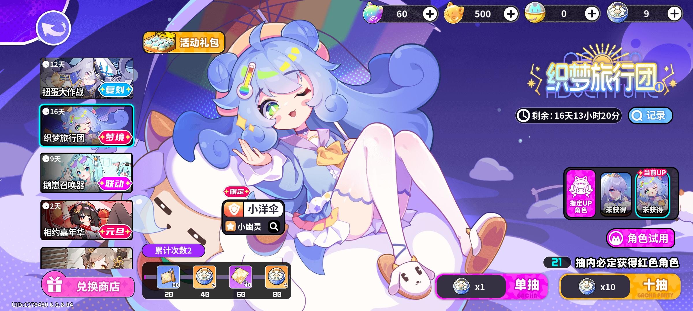 我玩了也有一个月多,也挺喜欢这游戏,氪了不少,也希望盲盒派对可以越做越好,然后对于现状我的提议是这个出新角色频率高,返场频率也高,水晶完全跟不上卡池,建议活动方面出点可以获得水晶的现在水晶太固定了,玩法多点新样式,皮肤方面建议出一个可以赠送好友,好感度目前看没啥用,以后可以用在这,然后就是重复获得角色福利也待提高一点,一个角色售价500金票重复获得只有30金票(真的很亏呀)然后说一下那个联机对战,